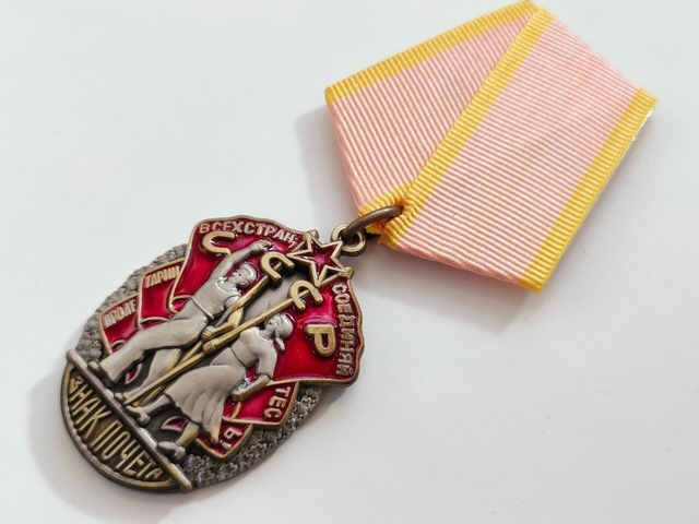 ※※※※以下に関するお問い合わせは受け付けておりませんので、ご了承いただければ幸いです。 ●売り切れている商品の再入荷や質問について ●取り扱っていない商品のお取り寄せについて ※※『中島雑貨』の商品画像を無断で利用して販売しているサイトは全て転売屋ですので、詐欺や高額転売等に十分ご注意ください。 【商品説明】 ロシアのミリタリー専門ショップから仕入れた記念メダル、または勲章です。 ①主材:重メタル ②生産・仕入れ:ロシア、サンクトペテルブルグ製造 ③メダルの高さ:約 4.3 cm   ④メダル・勲章内の刻印表記の意味: ●表:生産力向上に寄与した者への勲章 ●裏:- ⑤~配達について~ ● お支払い後4~7日後に発送開始。 ●「普通郵便」のため、追跡番号は発行されません。 ●「普通郵便」のため、配達日付、および時間帯の指定はできません。 ●ヤマト運輸による追跡番号付きの郵送への変更は、表示価格より+600円にて承ります。 必ずご購入前にコメントをお願いいたします。ご購入後の変更は不可能です。 ●速達をご希望の場合も、同様に別途+450円となります。 ⑥送料込みの値段です。 ⑦他の業務との関係上、コメントやお問い合わせへの回答に時間を要する場合が多く、夜中にしか返答できない日がほとんどです。ご了承いただければ幸いです。 ⑧新品未使用ですが、海外の製品につき、商品画像には映りにくい細かい傷や色移り、汚れなどが見られる場合がございます。その点を予めご了承の上、お買い求めください。 ⑨状態: 新品未使用 / ケースなし(ただし、梱包は丁寧に仕上げます。) ➉ご購入の前に、必ずHPトップページ左側の「ABOUT」欄の説明文をご一読下さい。