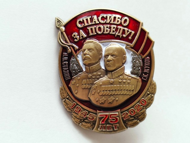 ※※※※以下に関するお問い合わせは受け付けておりませんので、ご了承いただければ幸いです。 ●売り切れている商品の再入荷や質問について ●取り扱っていない商品のお取り寄せについて ※※『中島雑貨』の商品画像を無断で利用して販売しているサイトは全て転売屋ですので、詐欺や高額転売等に十分ご注意ください。 【商品説明】 ロシアのミリタリー専門ショップから仕入れた記念メダル、または勲章です。 ①主材:重メタル ②生産・仕入れ:ロシア、サンクトペテルブルグ製造 ③メダルの高さ:約 4.5 cm   ④メダル・勲章内の刻印表記の意味:「勝利をありがとう」 第二次世界大戦戦勝75周年記念の記念バッジです。 スターリン、ジューコフ感謝記念メダル。 ⑤~配達について~ ● お支払い後4~7日後に「普通郵便」にて発送開始。 ●「普通郵便」のため、追跡番号は発行されません。 ●「普通郵便」のため、配達日付、および時間帯の指定はできません。 ●補償あり、配達日時・時間帯を指定されたい場合はヤマト便への変更が必要です。ヤマト運輸による郵送への変更は、表示価格より+600円にて承ります。ヤマト運輸の専用ボックスに商品が収まり切らない場合は表示価格より+900円にて承ります。 必ずご購入前にコメントをお願いいたします。ご購入後の変更は不可能です。 ●速達をご希望の場合も、同様に別途+450円となります。 ⑥送料込みの値段です。 ⑦他の業務との関係上、コメントやお問い合わせへの回答に時間を要する場合が多く、夜中にしか返答できない日がほとんどです。ご了承いただければ幸いです。 ⑧新品未使用ですが、海外の製品につき、商品本体や商品箱(ケース)ともに商品画像には映りにくい細かい傷や色移り、汚れなどが見られる場合がございます。また、証明書がある品番は、その証明書も折れ曲がっていたりする可能性もございます。その点を予めご了承の上、お買い求めください。 ⑨状態: 新品未使用 / 商品の専用箱は無し。代わりに丁寧に梱包します。 ➉ご購入の前に、必ずHPトップページ左側の「ABOUT」欄の説明文をご一読下さい。