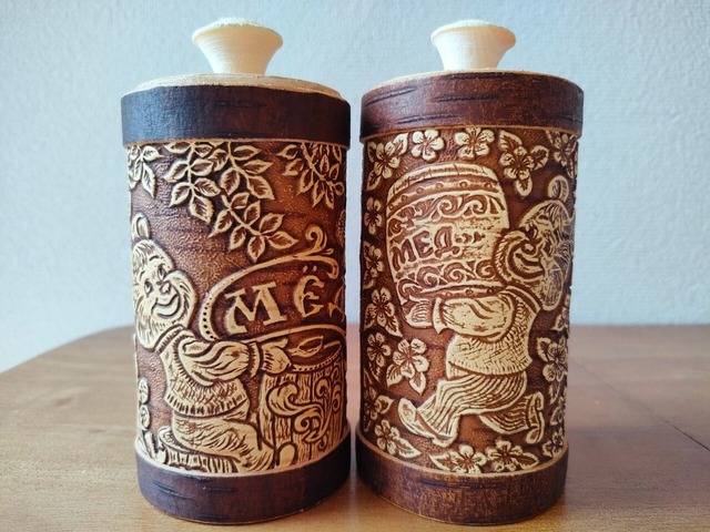 【BE340】北欧ロシア雑貨、ベレスタ・白樺の小物入れ/キャニスター