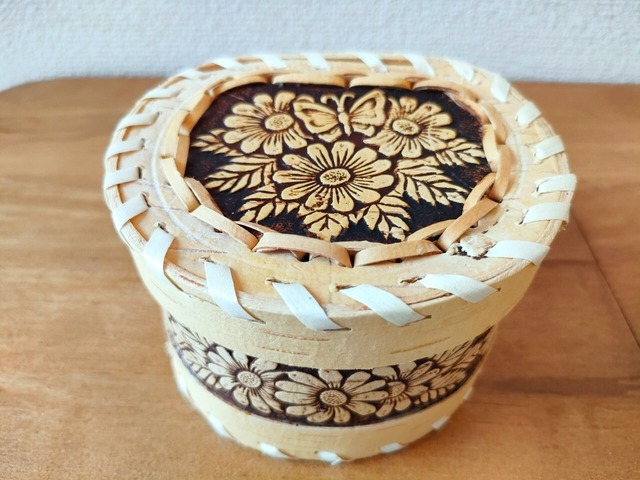 【BE182】北欧ロシア雑貨、ベレスタ白樺の小物入れ・キャニスター【お花】