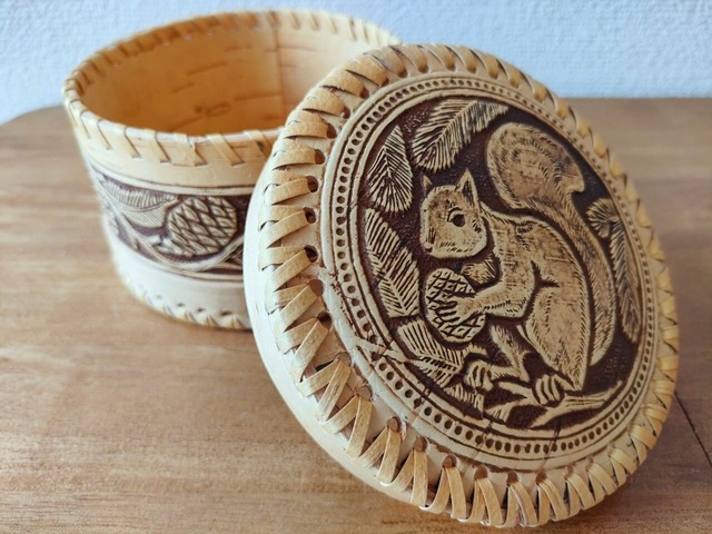 【BE339】北欧ロシア雑貨、ベレスタ・白樺の小物入れ リス