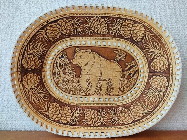 【BE341】北欧ロシア雑貨、ベレスタ・白樺の小物入れ(大)皿型ベレスタ 熊