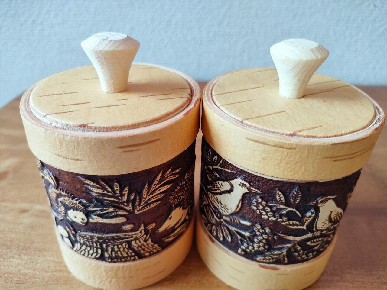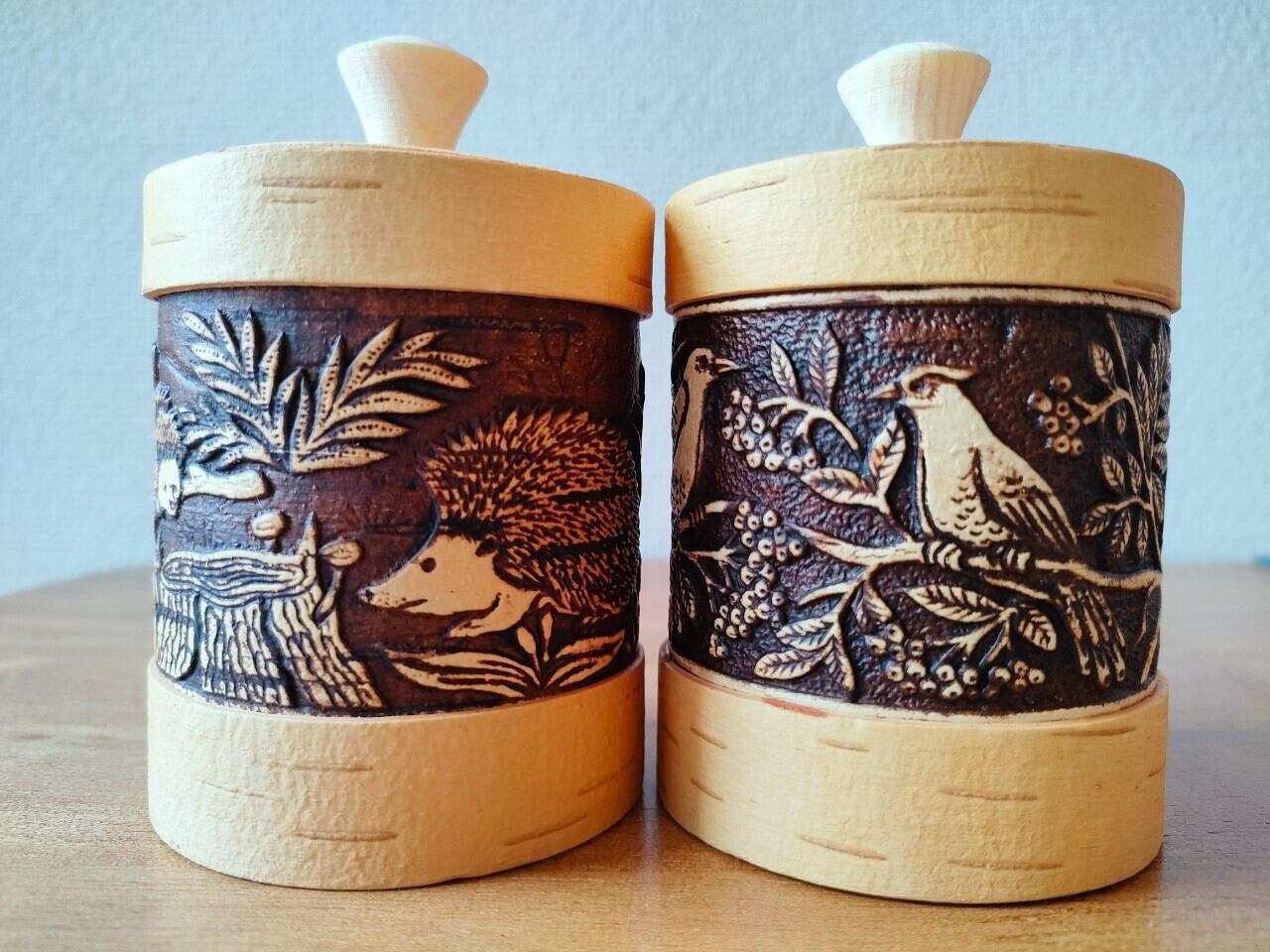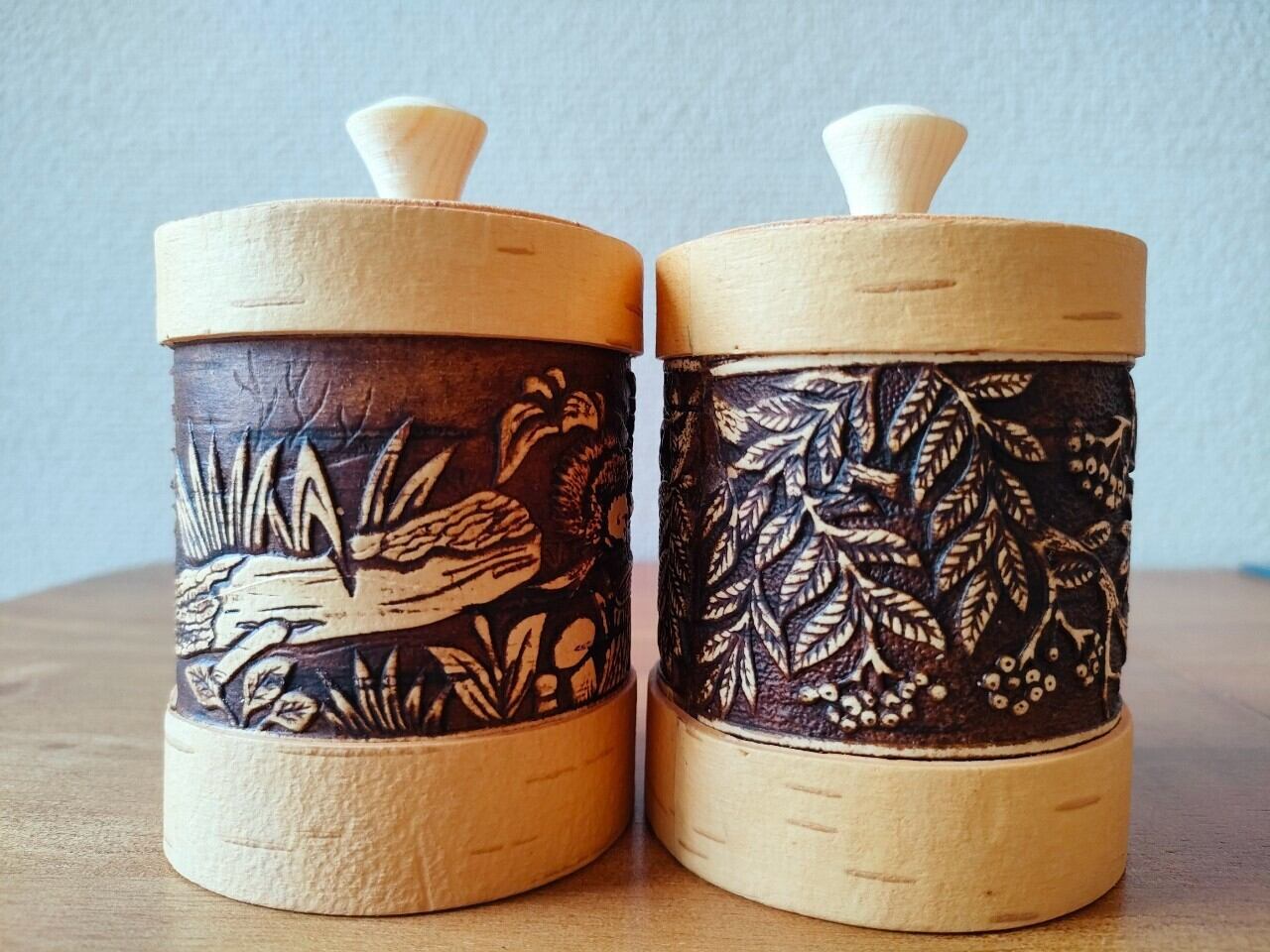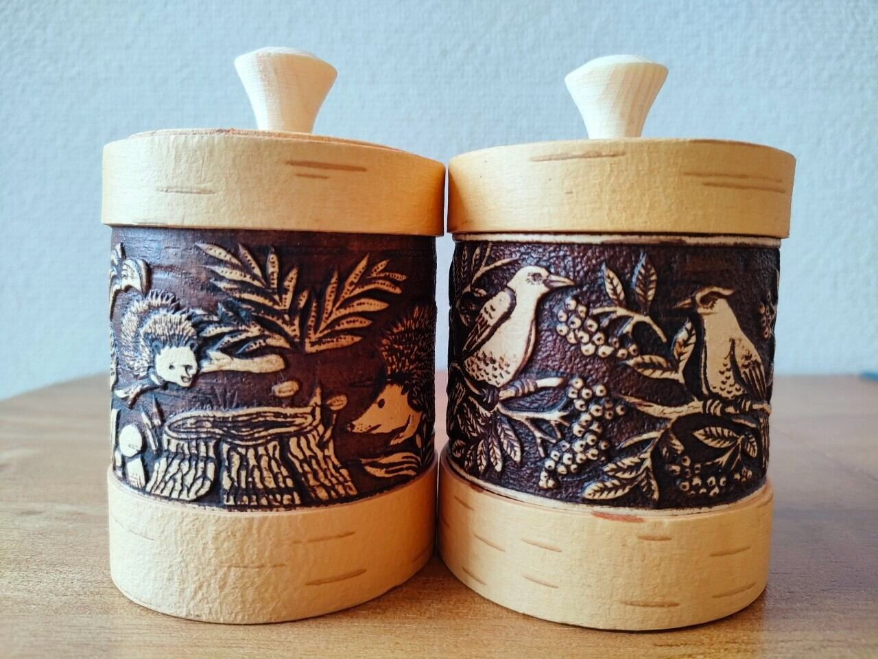 【BE332】北欧ロシア雑貨、ベレスタ白樺の小物入れ・キャニスター 2個セット