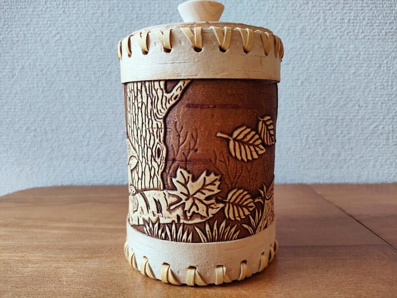 【BE338】北欧ロシア雑貨、ベレスタ・白樺の小物入れ/キャニスター
