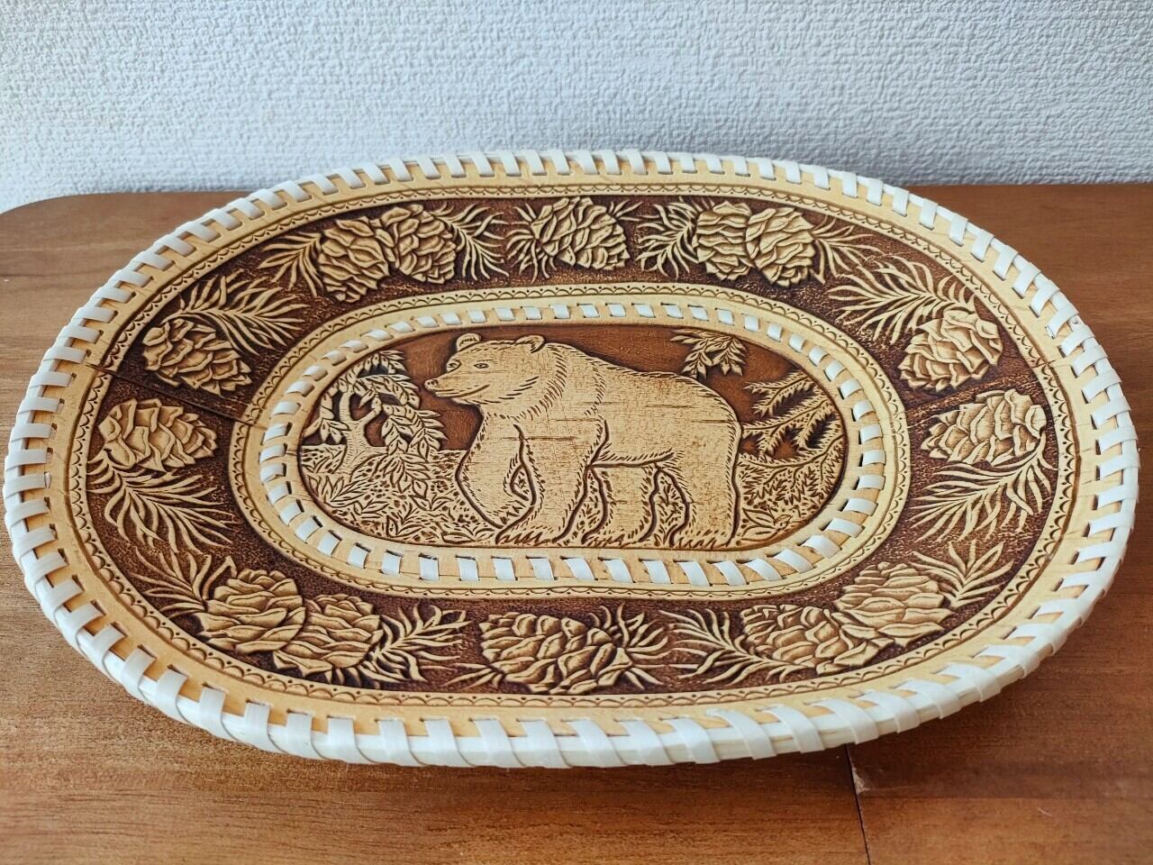 【BE341】北欧ロシア雑貨、ベレスタ・白樺の小物入れ(大)皿型ベレスタ 熊