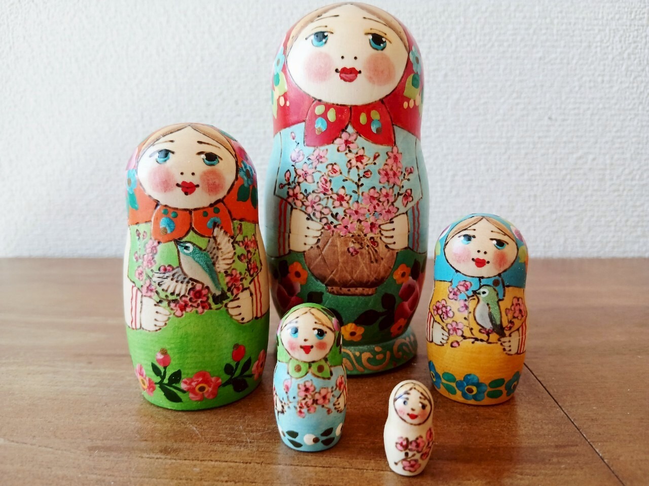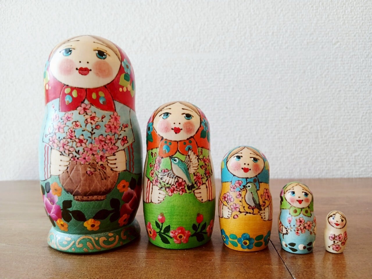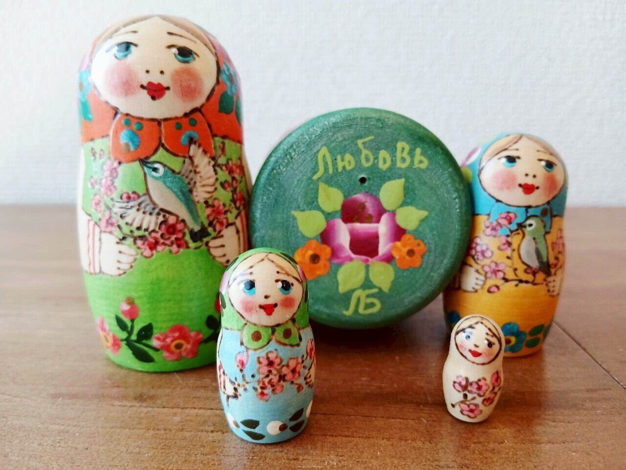 リュボーフィさんの母親のナジェージダ・イワンツォワさんは人生のすべてをマトリョーシカに捧げている大作家さんです。マトリョーシカの描画技術の伝道のため19歳で南米に渡り、その後は世界中の美術館やコレクション博物館などで彼女の作品は展示され始め、認知されました。ロシア・マトリョーシカ誕生の初期の頃の伝統的なデザインを守るスタイルで、この才能と技術は娘のリュボーフィ・ブズィキナさんに継承され、世界中で人気を博しています。贋作も多く、注意が呼びかけられています。