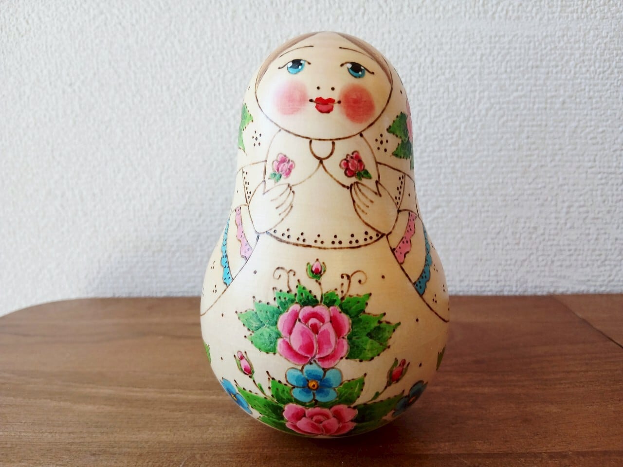 【LYH319】北欧ロシア雑貨 起き上がりこぼし(大) リューバ作 白木風