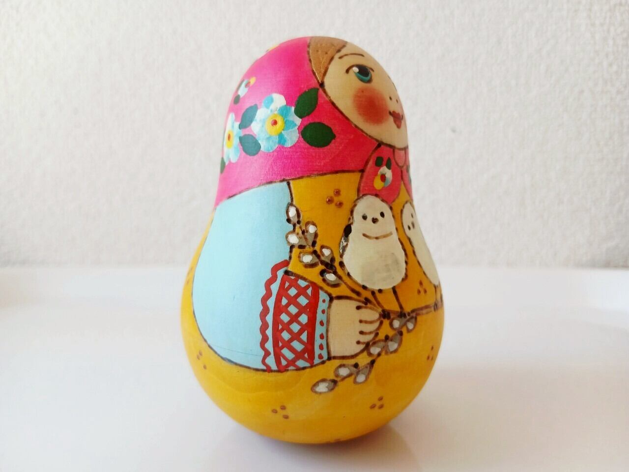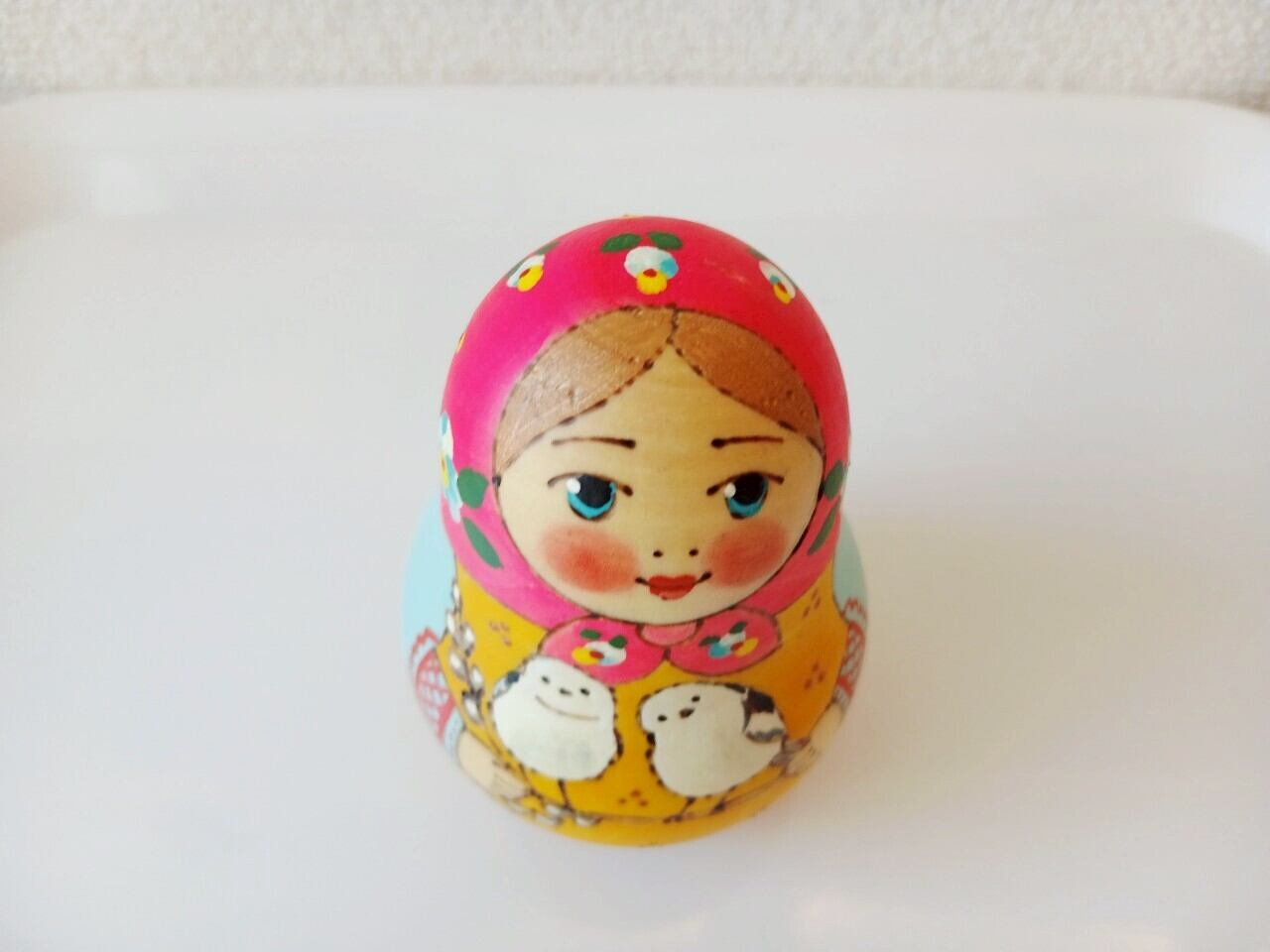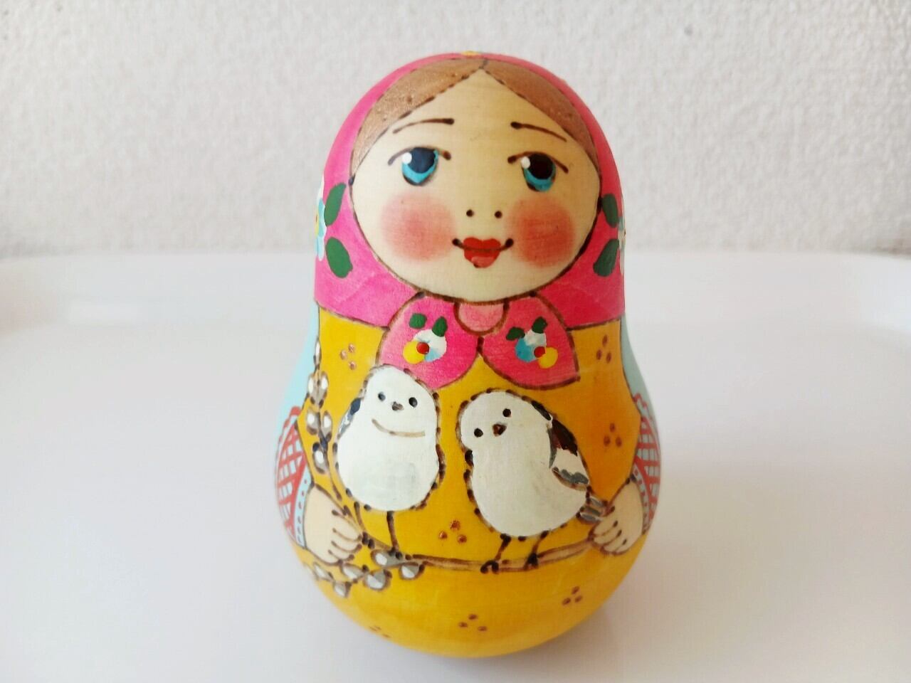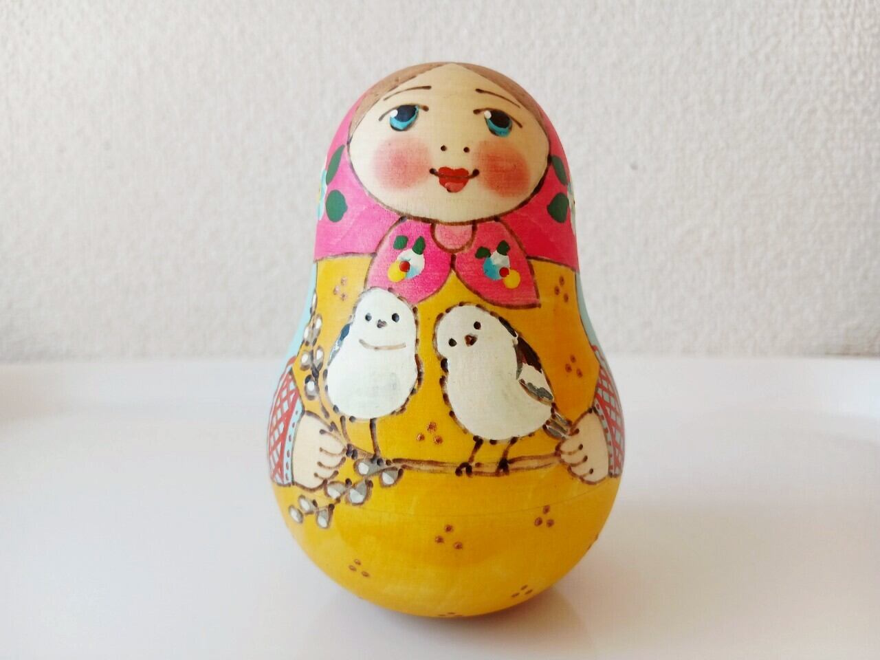 【LYH322】北欧ロシア雑貨 起き上がりこぼし(中) リューバ作 シマエナガ