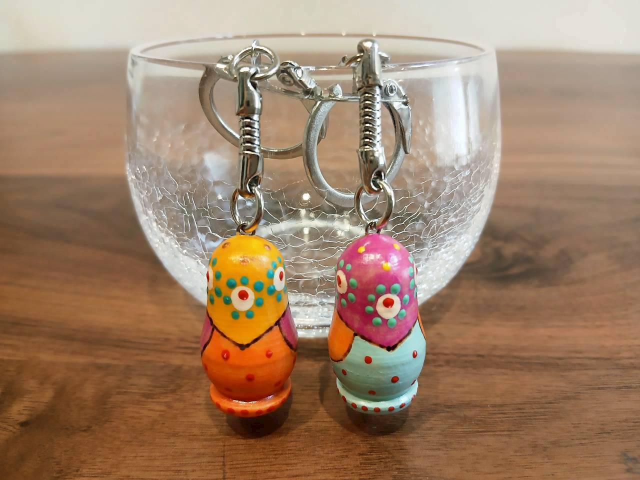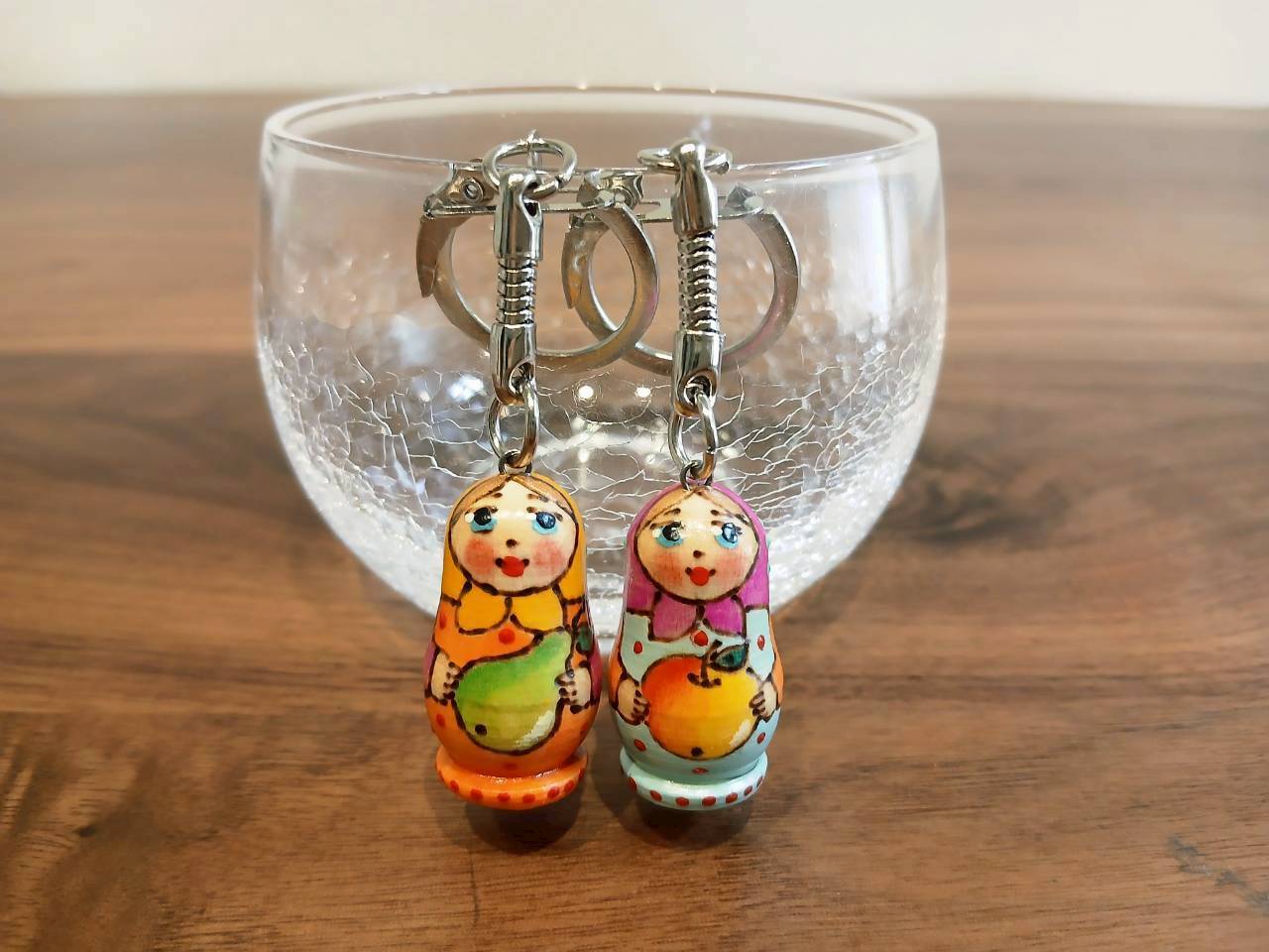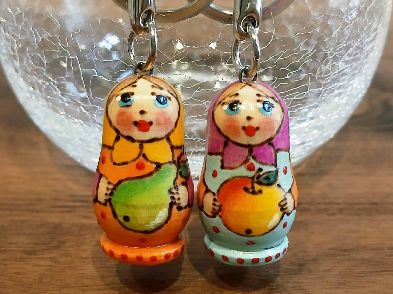 ロシアで有名なリュボーフィさんという作家のマトリョーシカの形をしたキーホルダーです。2個セット、バラ売り不可です。