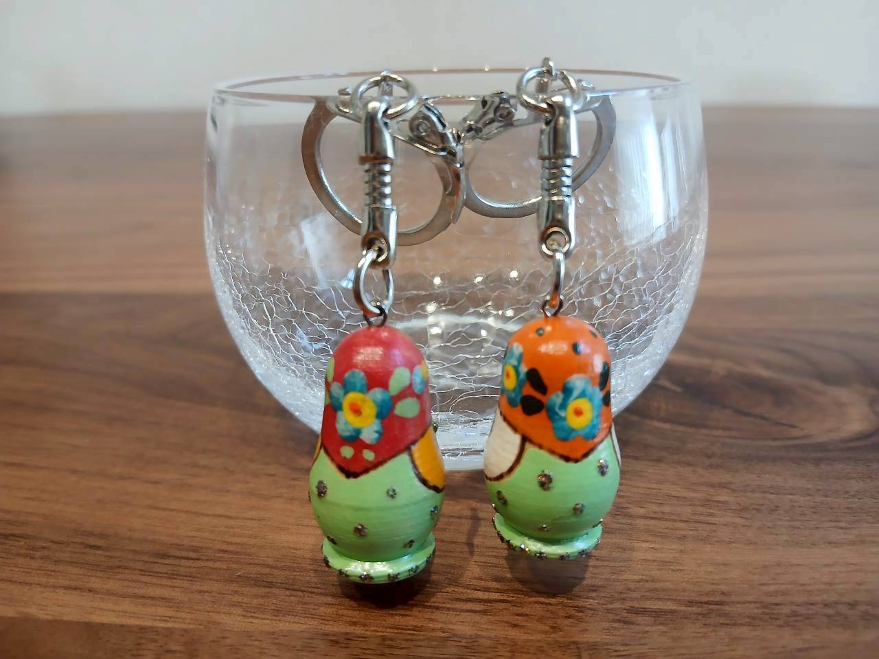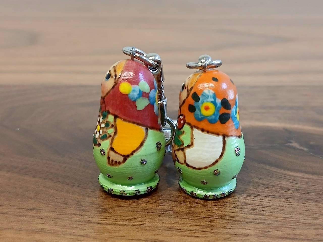 ロシアで有名なリュボーフィさんという作家のマトリョーシカの形をしたキーホルダーです。2個セット、バラ売り不可です。