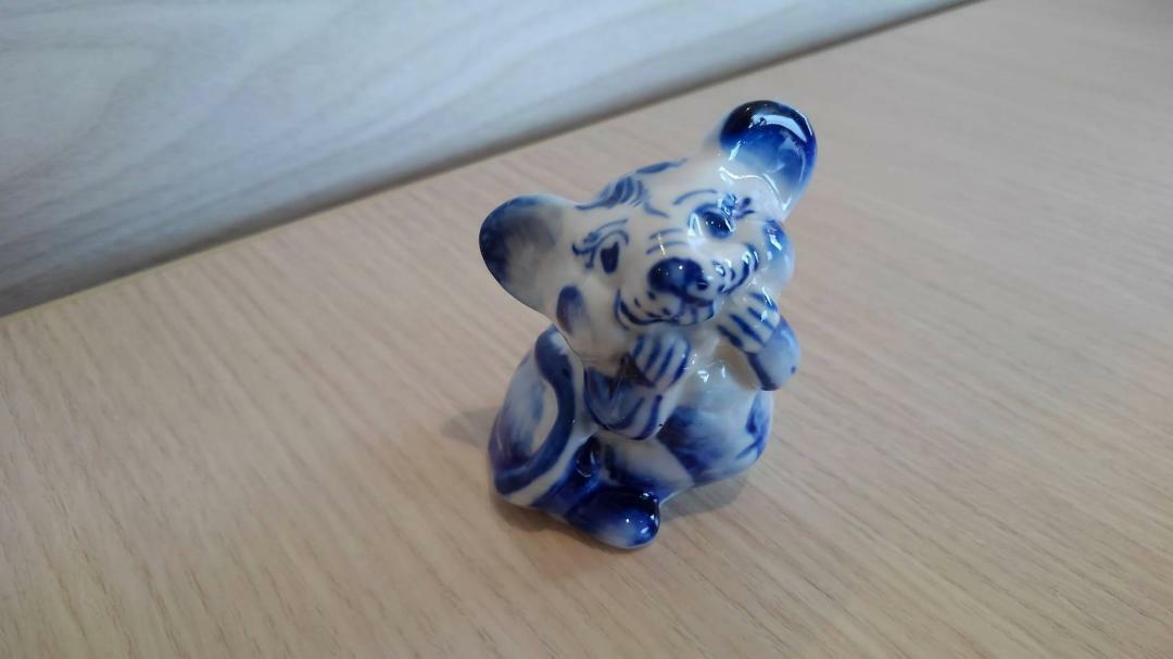 ロシアの伝統陶器、グジェリ焼です。ねずみをモチーフにしたインテリアです。