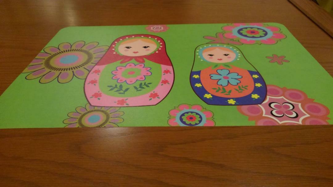 ロシアの伝統工芸品マトリョーシカをモチーフにしたランチョンマットです。プラスチックなので、液体等をこぼしても吸収せず、さっと拭き取れます。