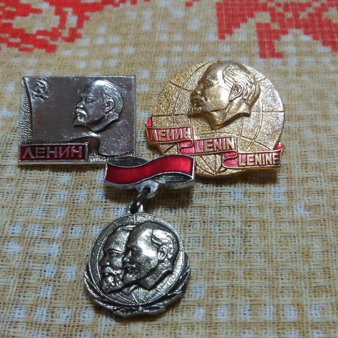 レーニンをモチーフにしたバッジ3個セットです。下のバッジにはマルクスも描かれています。
