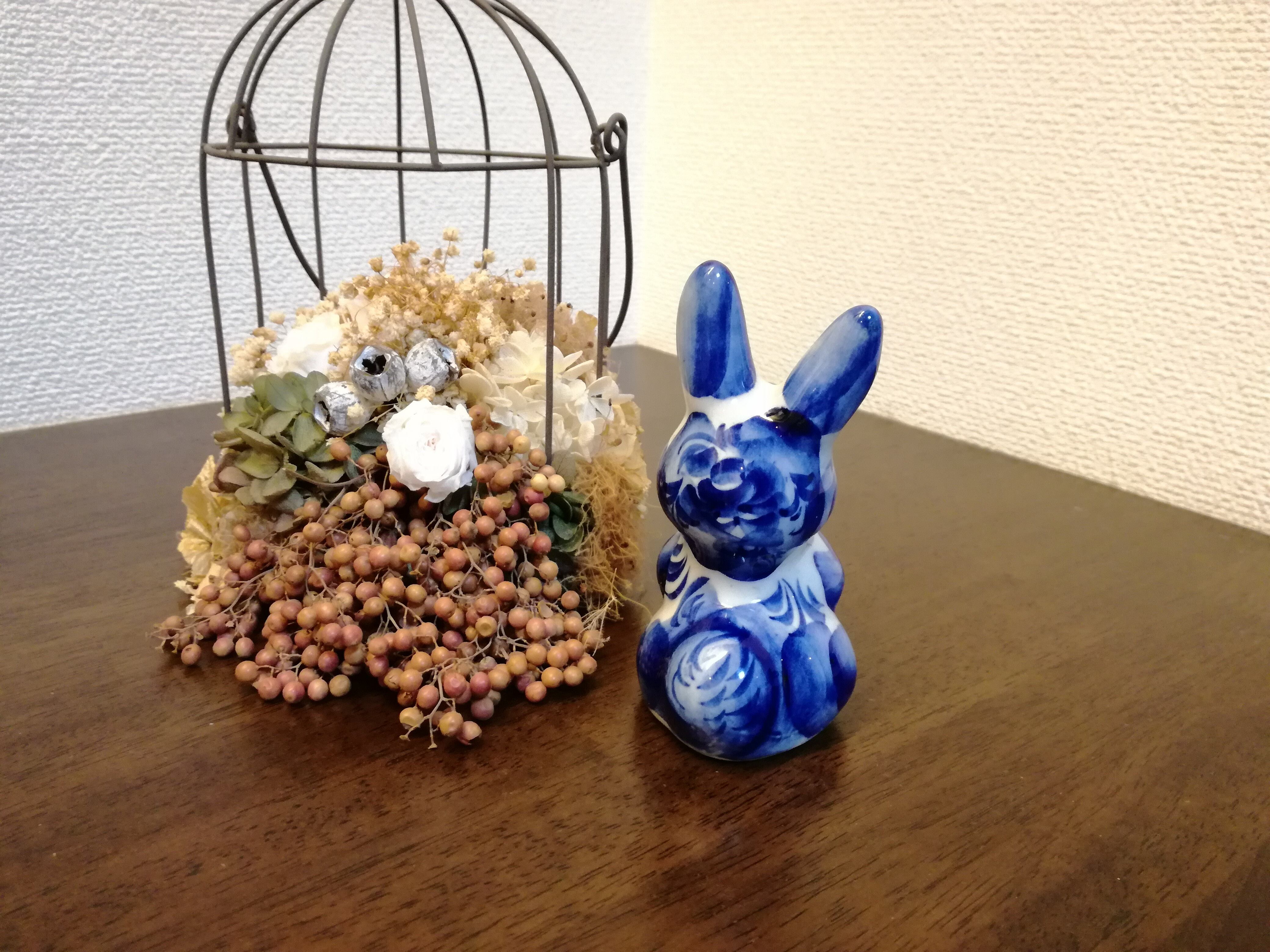 ◆商品説明:ロシアの伝統陶器、グジェリ焼です。人参をくわえるウサギがモチーフとなっています。うさぎが好きな方への贈り物にいかがでしょうか?