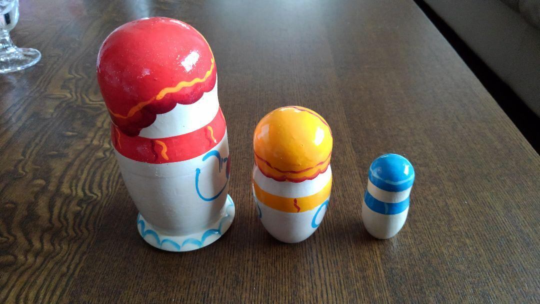 日本製ではないため、マトリョーシカは新品であっても間近で眺めると絵具のはがれ、また本体内部の木のシミ等がある場合がございます。(インテリアとして普通の距離から眺める分には問題ありません)。
