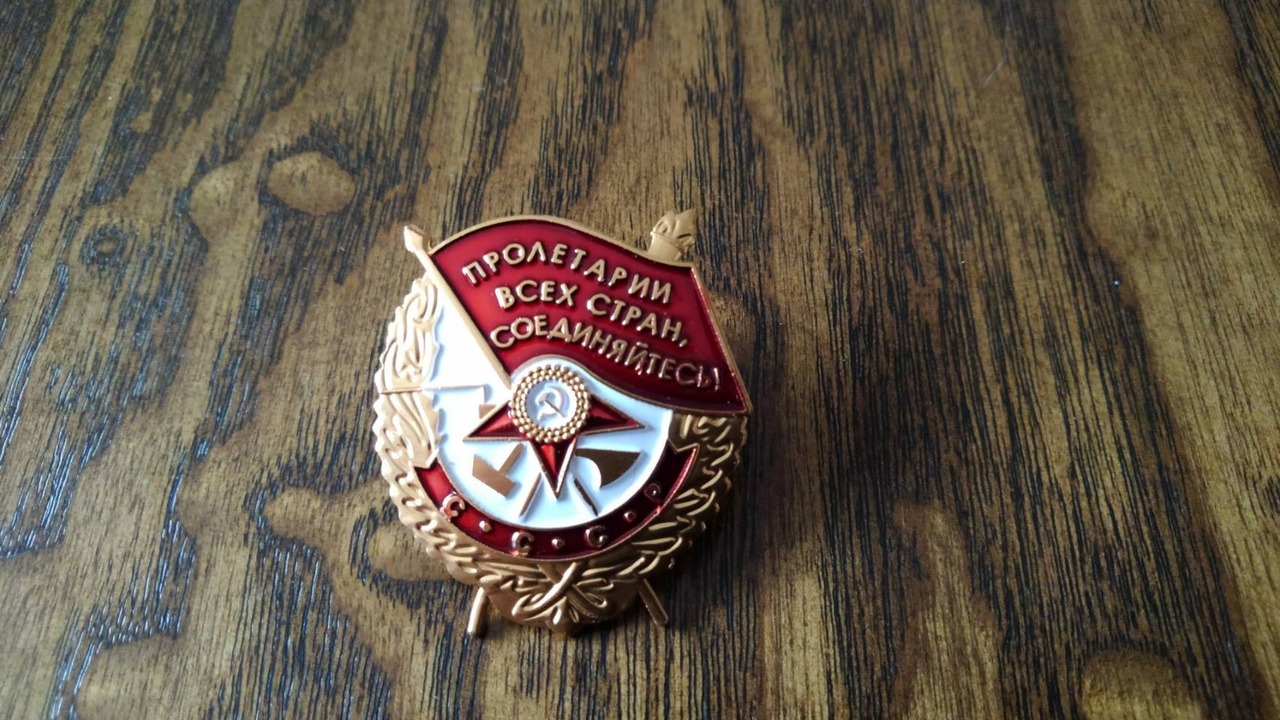 新品輸入バッジ:「万国の労働者よ、団結せよ!」