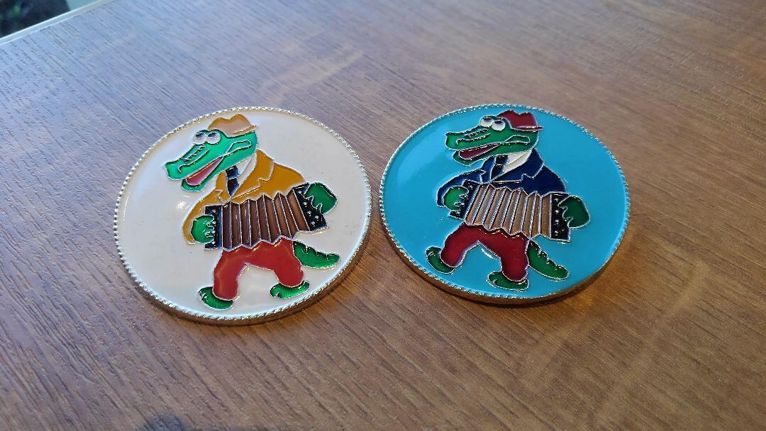ソビエトを代表するアニメ、チェブラーシカの友人であるゲーナをモチーフにしたバッジ2個セットです。