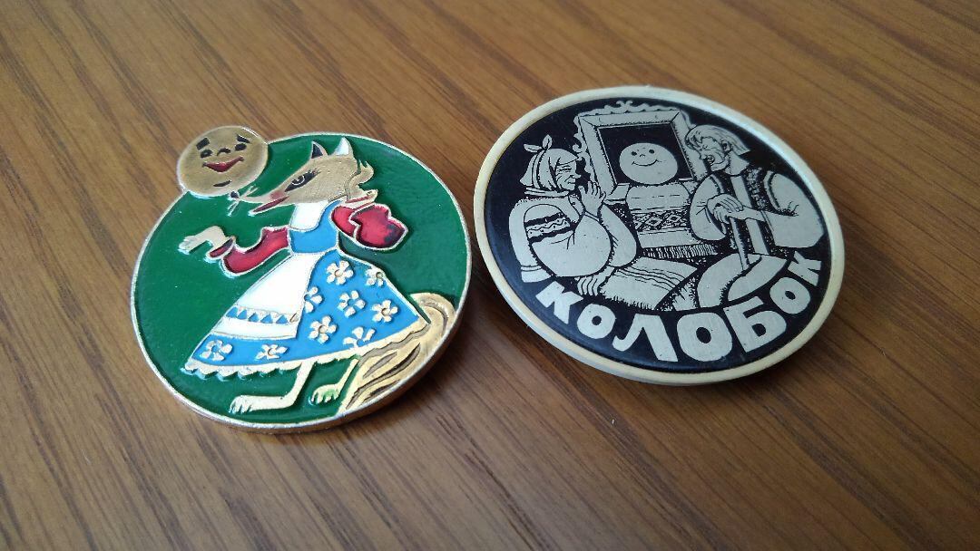 日本でも「おだんごぱん」の絵本でおなじみのロシア民話「コロボク」をモチーフにしたバッジ2個セットです。