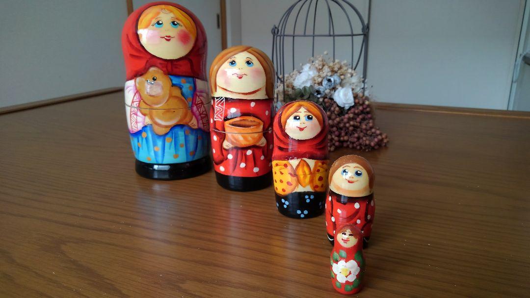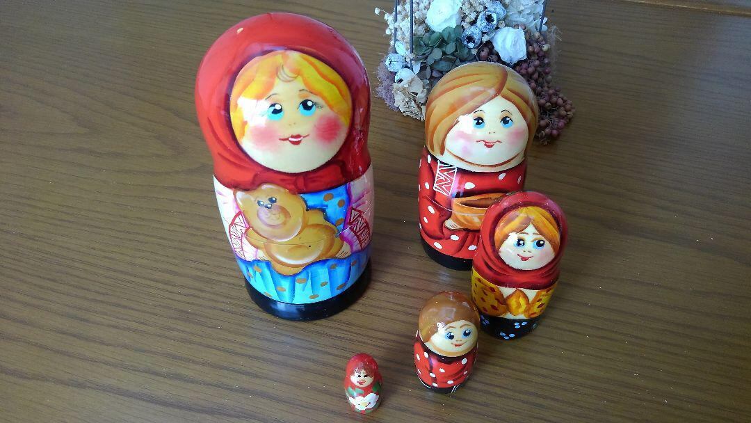 日本製ではないため、マトリョーシカは新品であっても間近で眺めると絵柄のハネや絵具のはがれ、また本体内部の木のシミ等がある場合がございます。(インテリアとして普通の距離から眺める分には問題ありません)