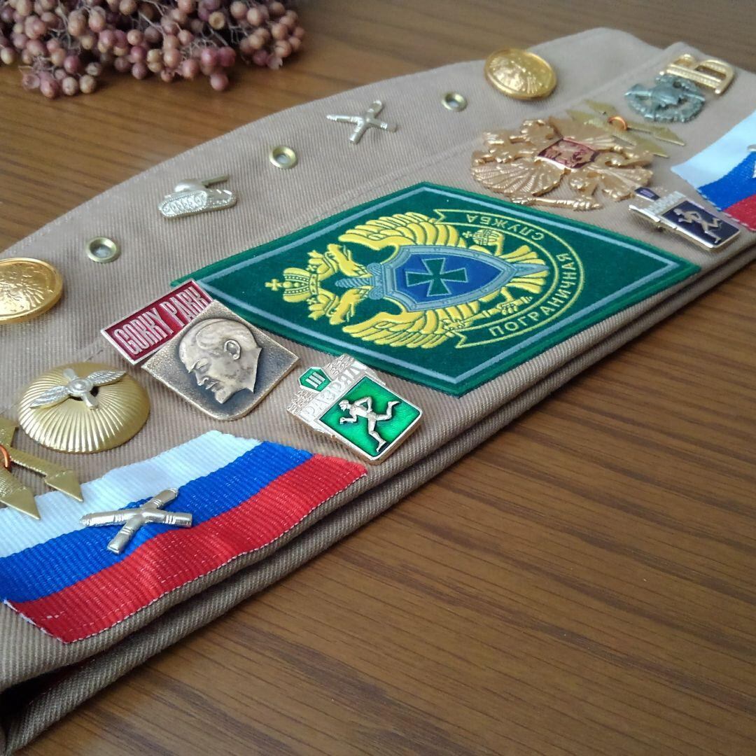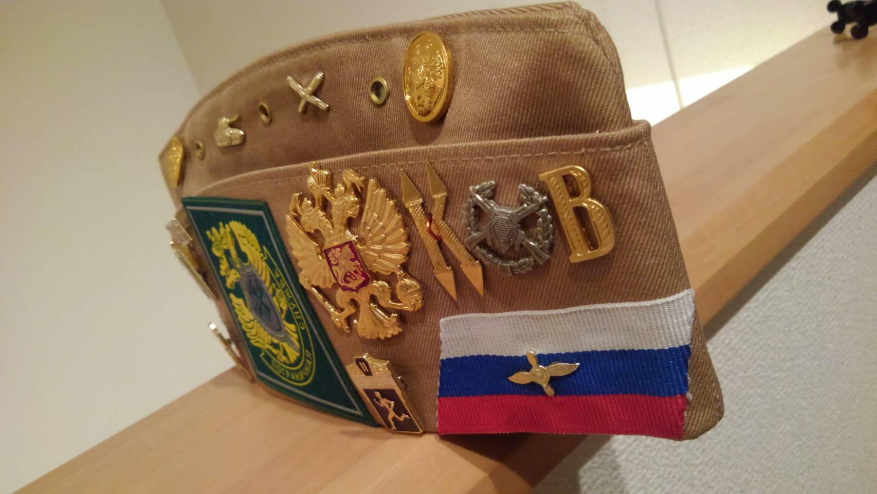 ロシア版ギャリソンキャップ、ピロトカです。帽章(レーニン、双頭の鷲のバッジ)がたくさんついています。