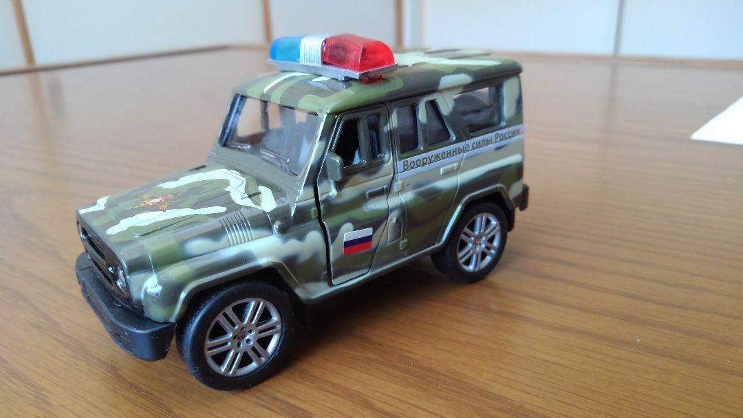 Uaz(ワズ)社のハンターという車種です。「ロシア軍」と書いてあります。