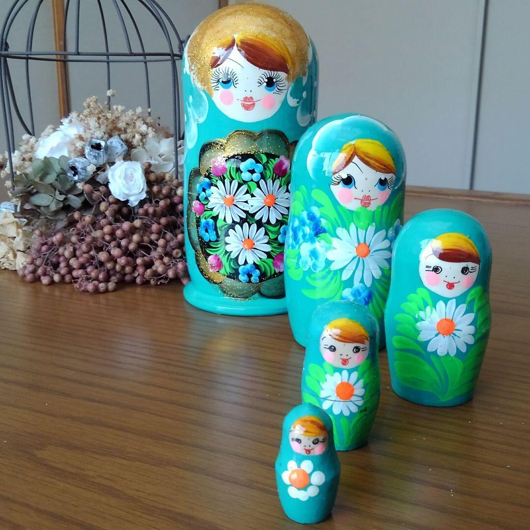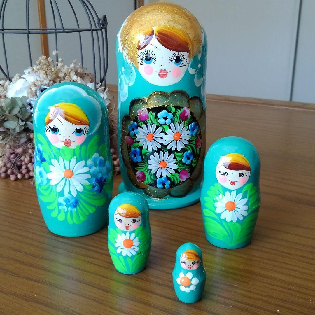 マトリョーシカは新品であっても間近で眺めると絵柄のハネや絵具のはがれ、また、本体内部の木のシミ等がある場合がございます。(インテリアとして普通の距離から眺める分には問題ありません)。