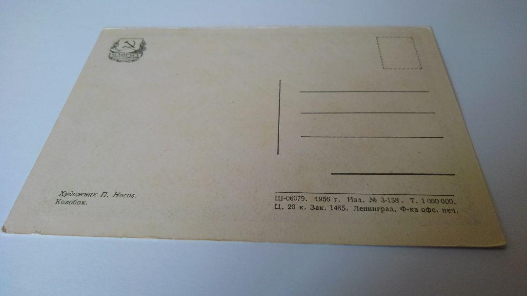 ソ連のヴィンテージ絵葉書です。ロシア民話「おだんごパン」が描かれています。