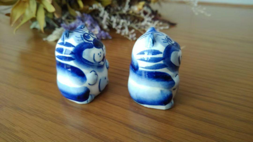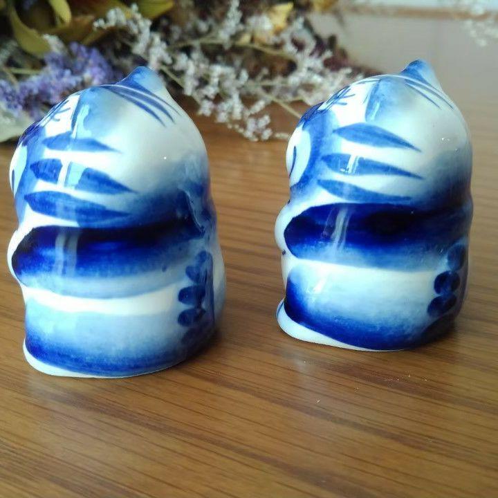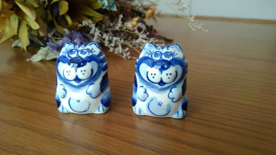 ◆商品説明:ロシアの伝統陶器、グジェリ焼です。とらの兄弟がモチーフです。虎や動物が好きな方への贈り物にいかがでしょうか?2体セットです。
