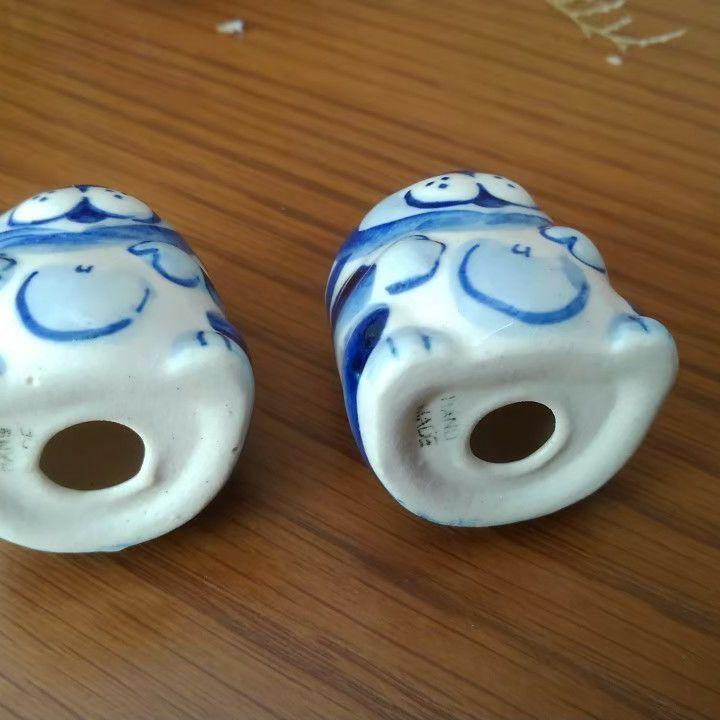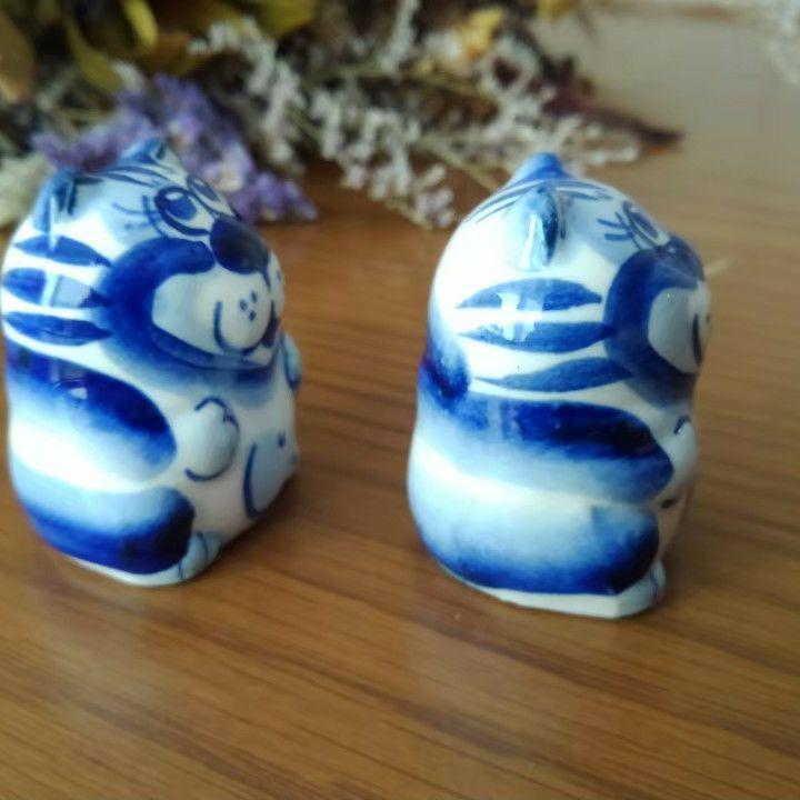 動物陶器、ロシアのグジェリ焼き2体【トラの子兄弟】
