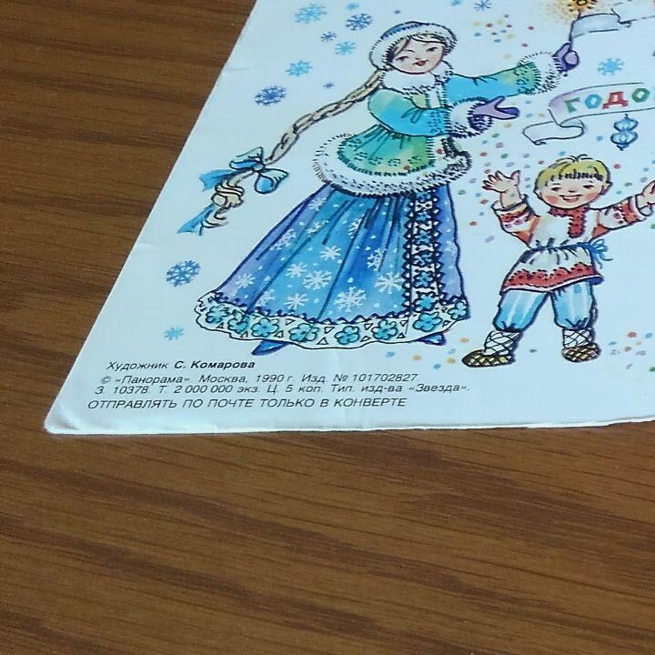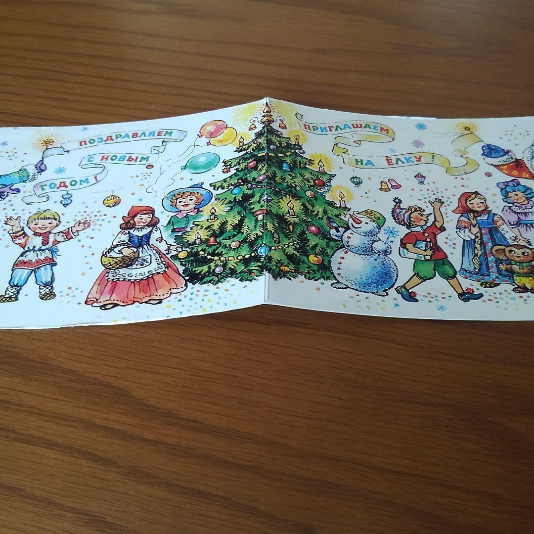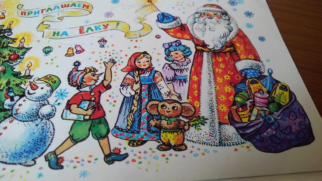 ソ連アニメのヴィンテージ絵葉書です。チェブラーシカなどが描かれています。1990年のパノラマポストカードです。