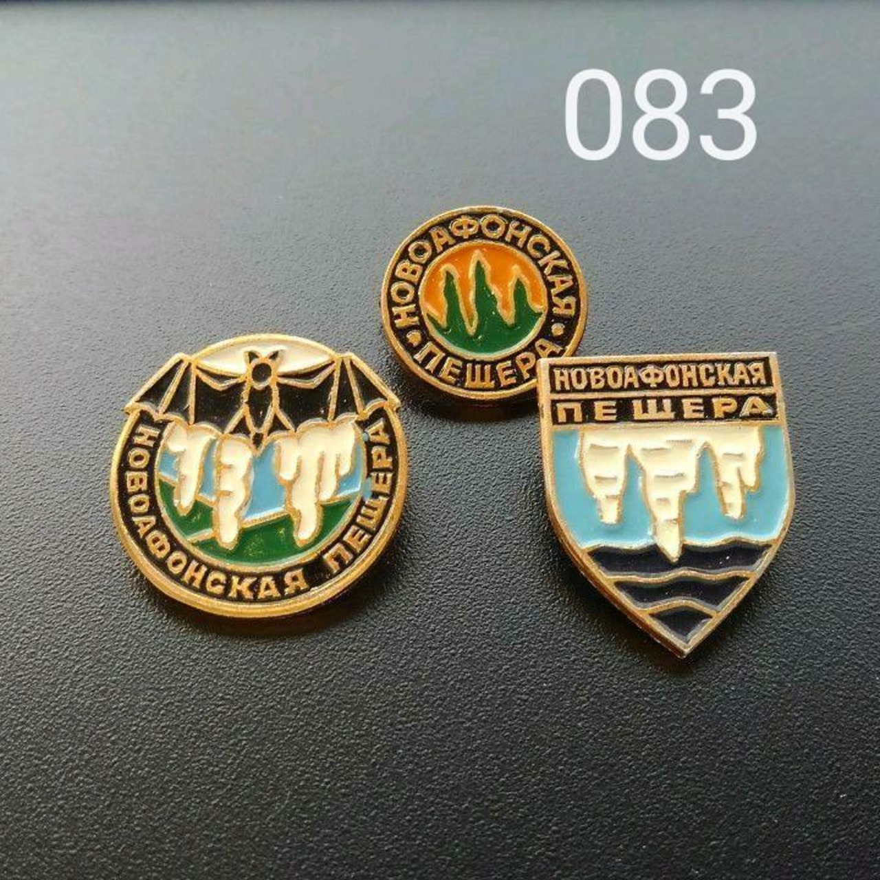 洞窟をモチーフにしたアンティークバッジ3個セットです。コウモリも描かれています。