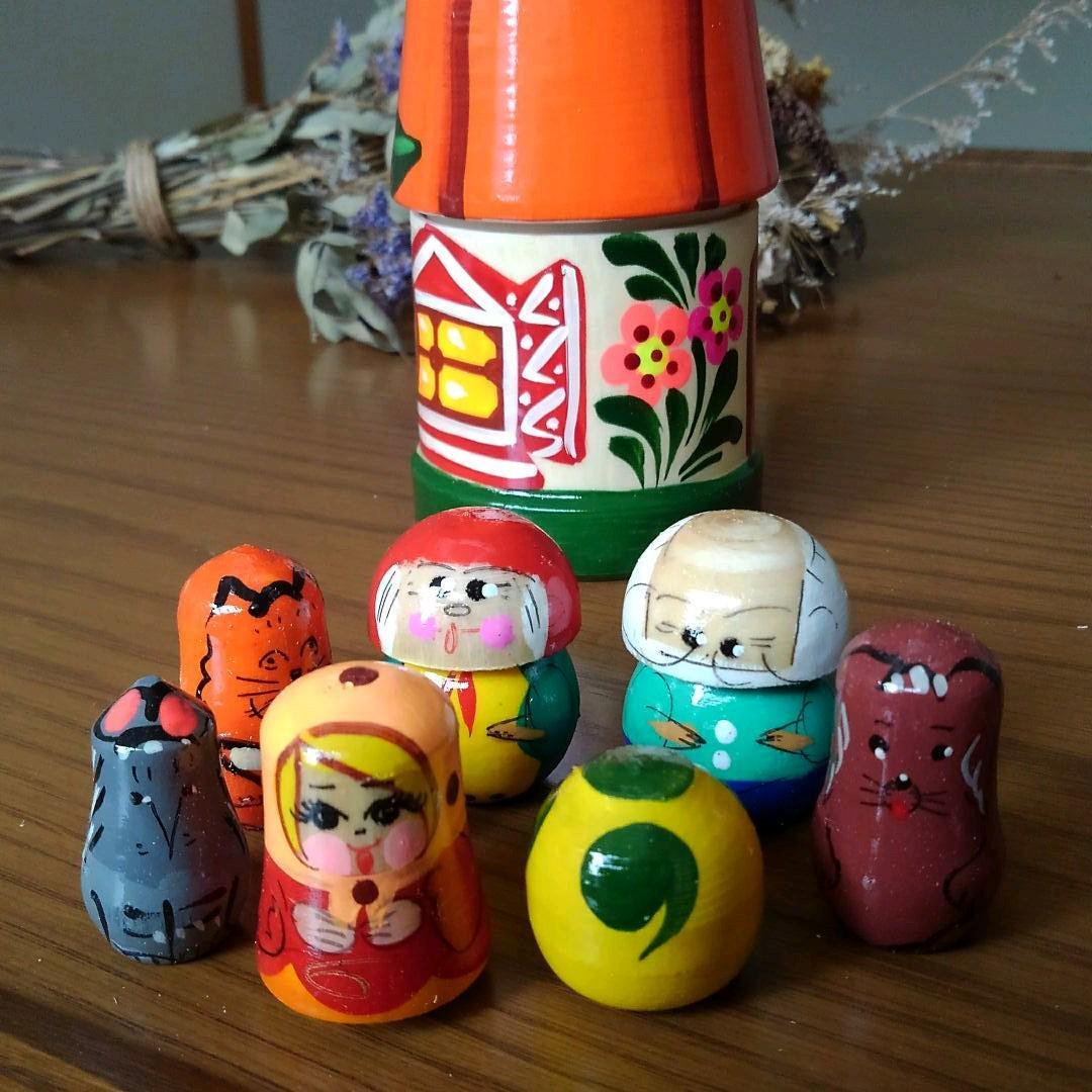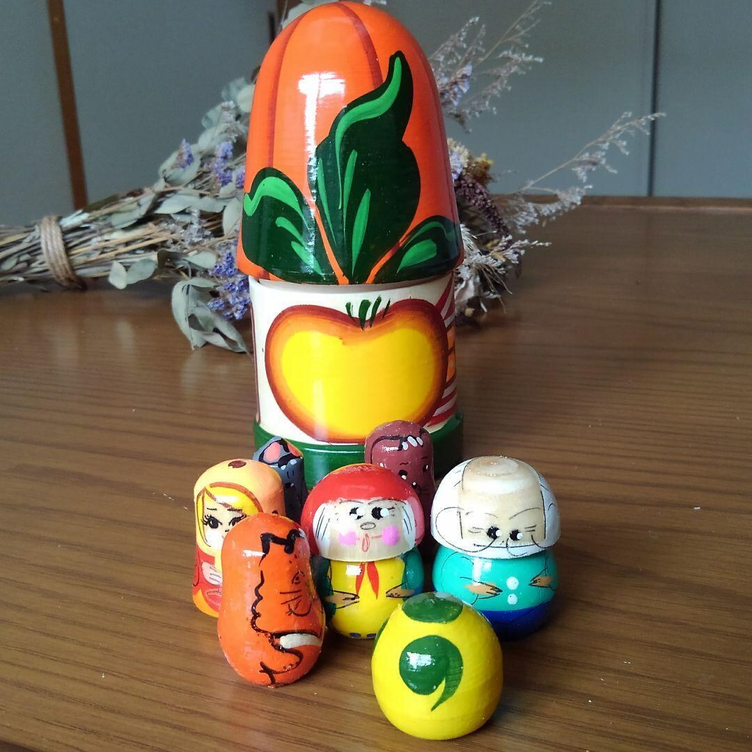 日本でも「おおきなかぶ」の絵本でおなじみのロシア民話をモチーフにしたロシアの職人さんによるハンドメイドのマトリョーシカ作品です。