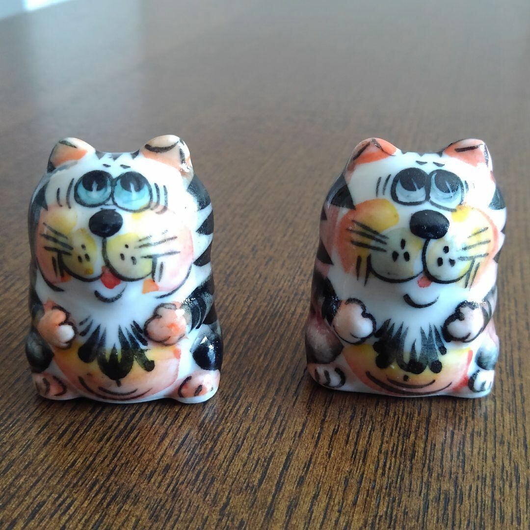 動物陶器、ロシアのカラーグジェリ焼き2体【トラの子兄弟】(※送料込み)