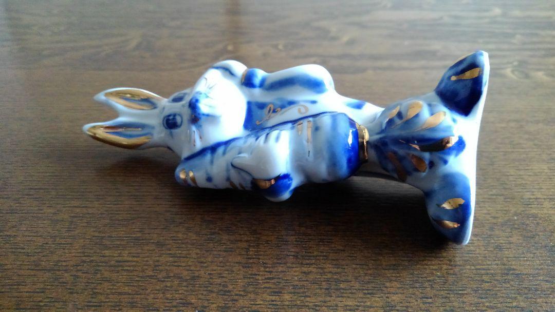 ◆商品説明:ロシアの伝統陶器、グジェリ焼です。うさぎがモチーフとなっています。陶器やうさぎが好きな方への贈り物にいかがでしょうか?