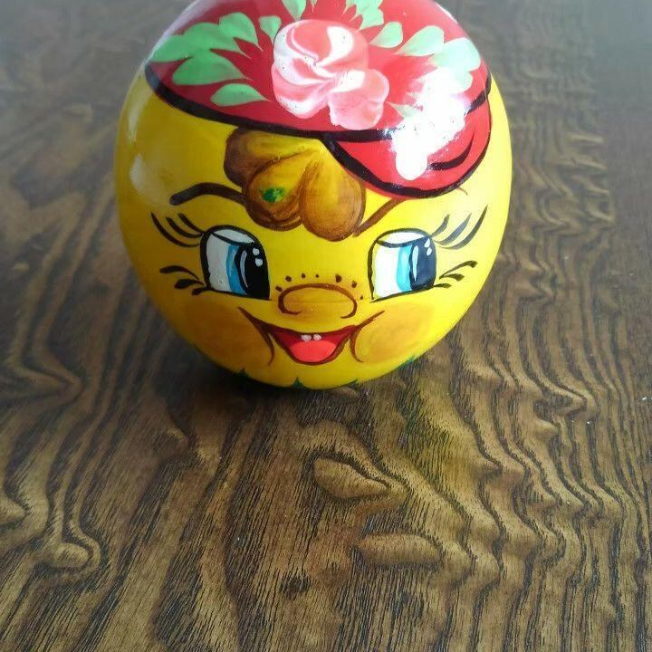 ロシア伝統の原色系べた塗りのカラフルな木製工芸品です。手に持ったり左右に揺らしたりすると、鈴のカランコロンという音が鳴ります。