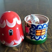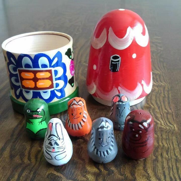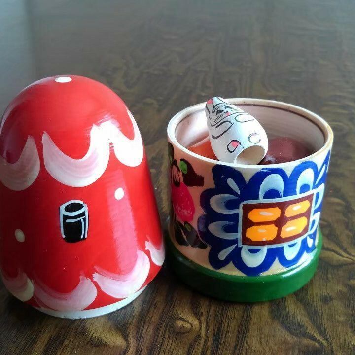 ロシア伝統の原色系べた塗りのカラフルな木製工芸品で、マトリョーシカ風です。ほのかな木の香りがします。