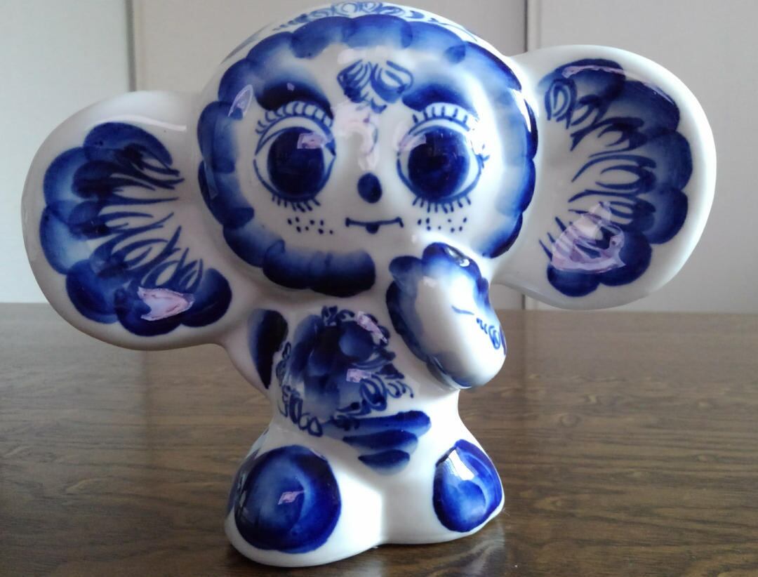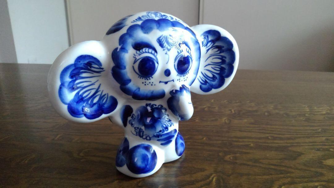 ●ロシアの伝統工芸品グジェリ焼で、チェブラーシカをモチーフにしたインテリアです。