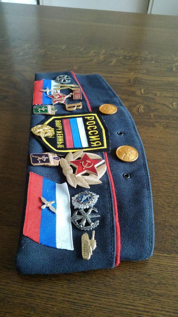 ロシア版ギャリソンキャップ、ピロトカです。勲章や帽章がたくさんついています。