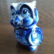 ◆商品説明:ロシアの伝統陶器、グジェリ焼です。フクロウがモチーフとなっています。動物陶器が好きな方への贈り物にいかがでしょうか?