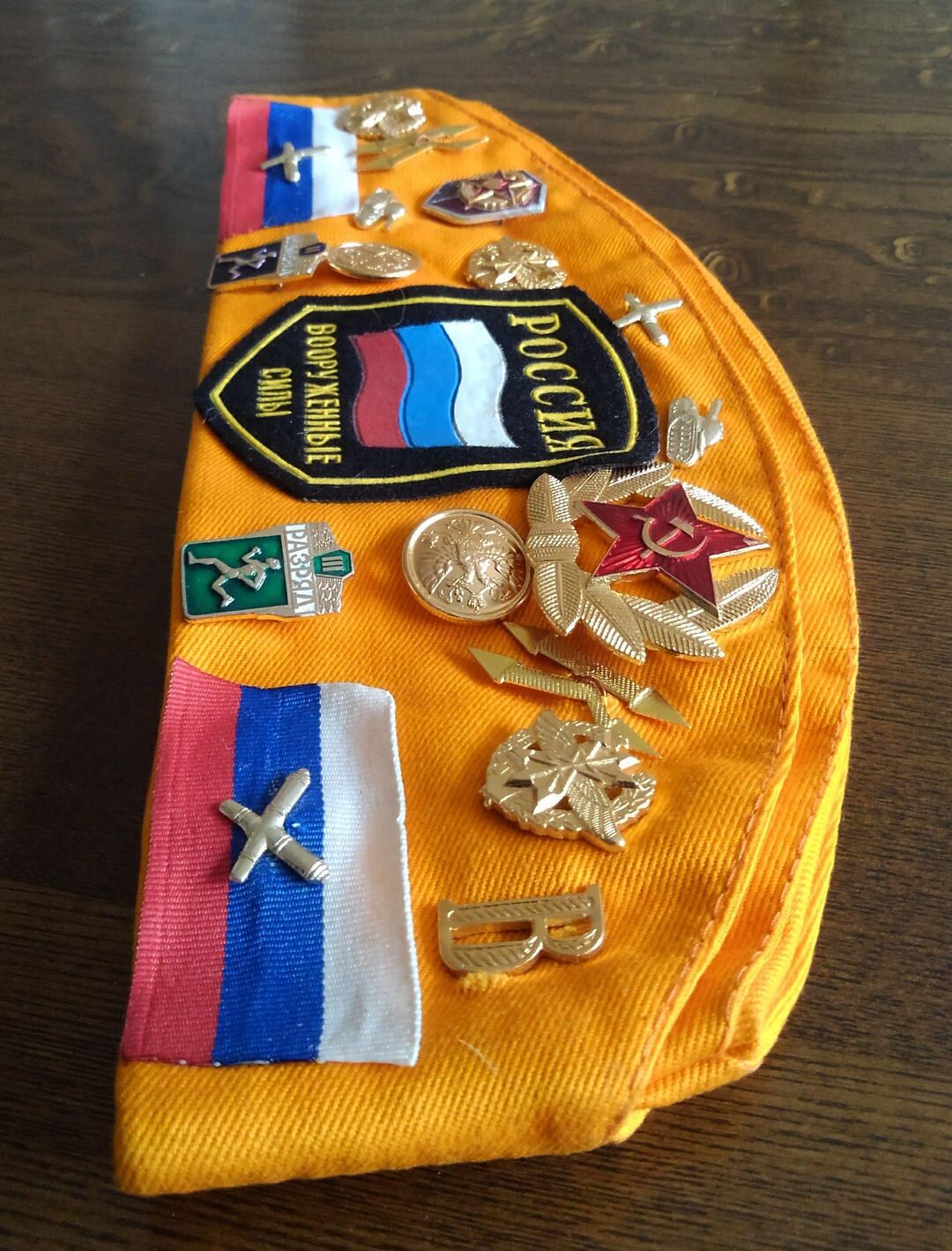ロシア版ギャリソンキャップ、ピロトカです。勲章や帽章がたくさんついています。