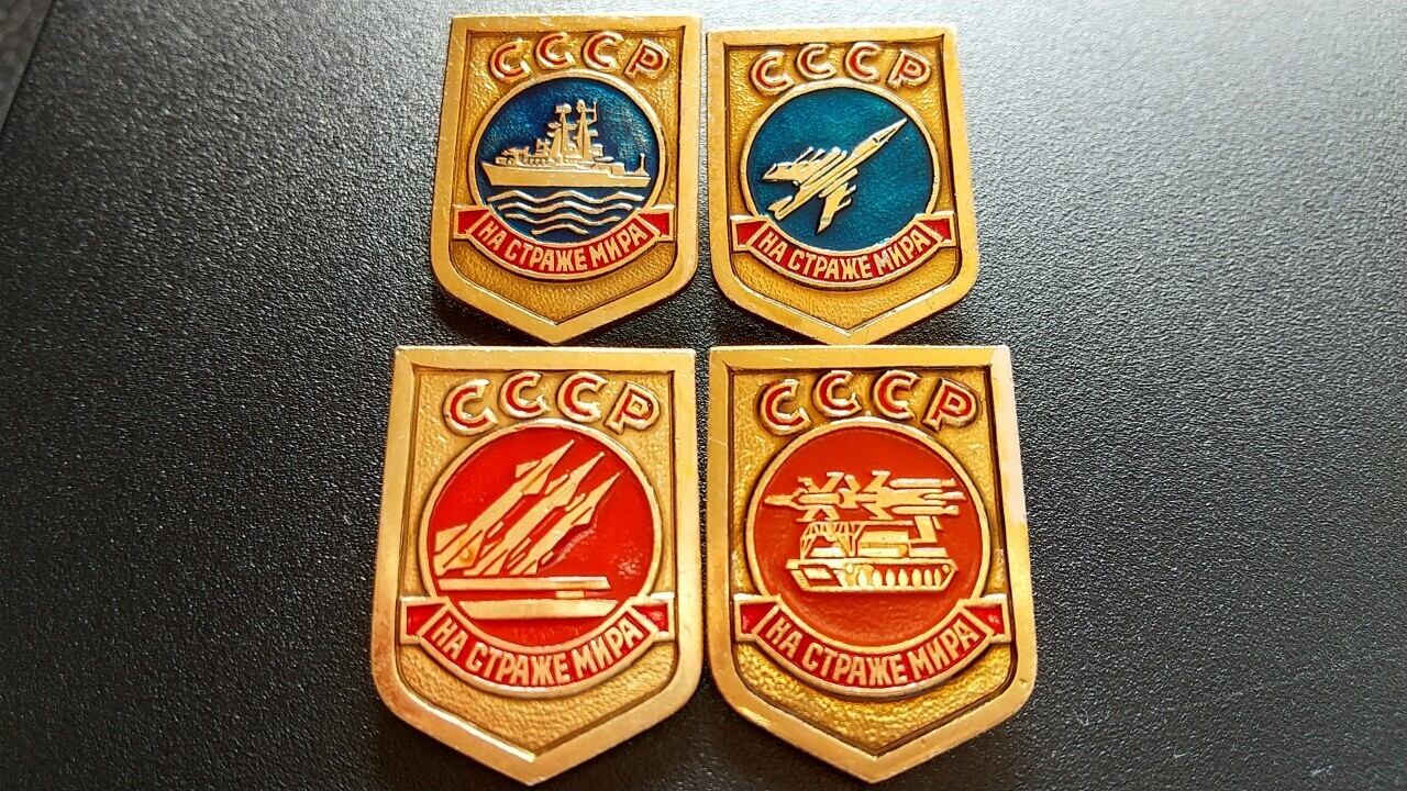 ロシア、旧ソ連の武器を記念するバッジ4個セットです。