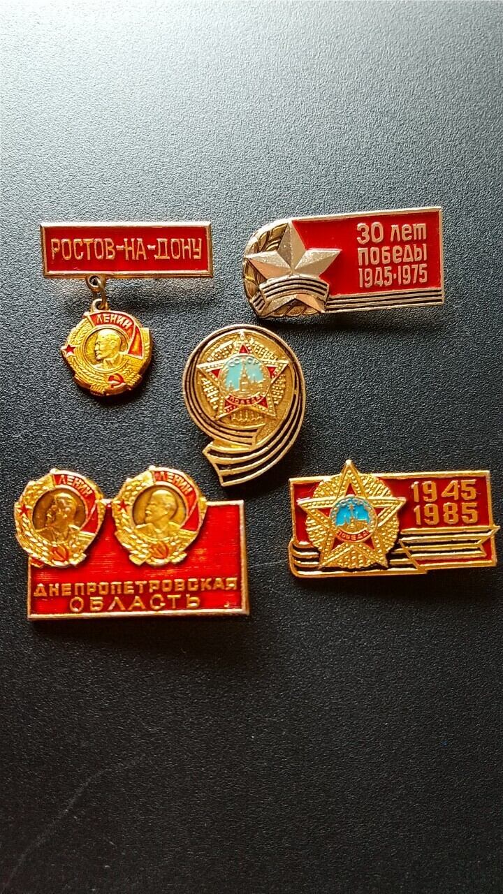 ソビエトの大祖国戦争戦勝やレーニンを記念したバッジ5個セットです。