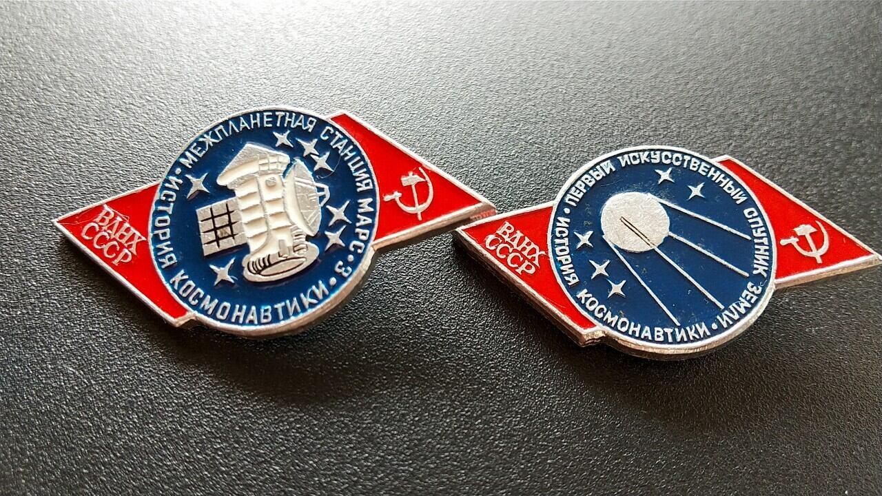 ソ連の宇宙開発を記念したバッジ2個セットです。
