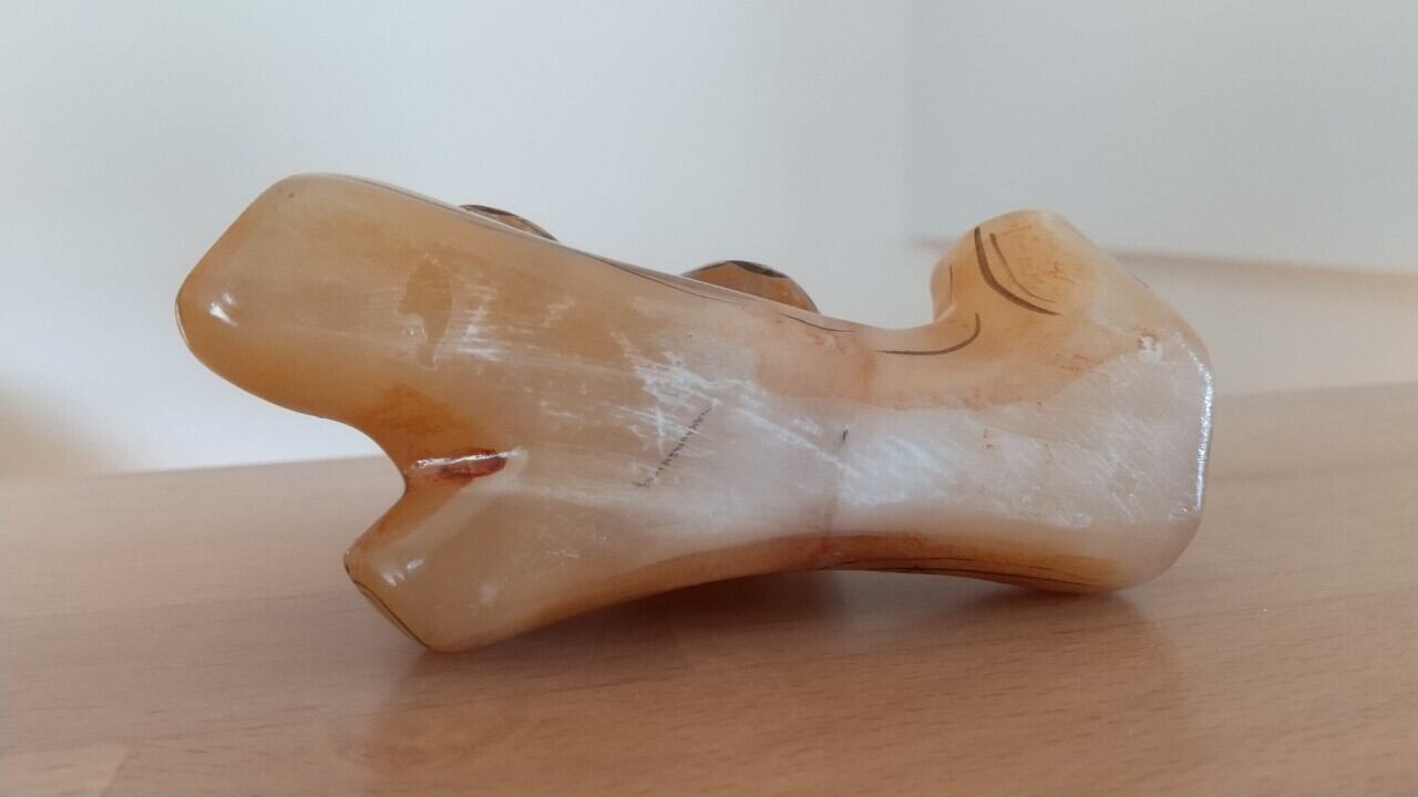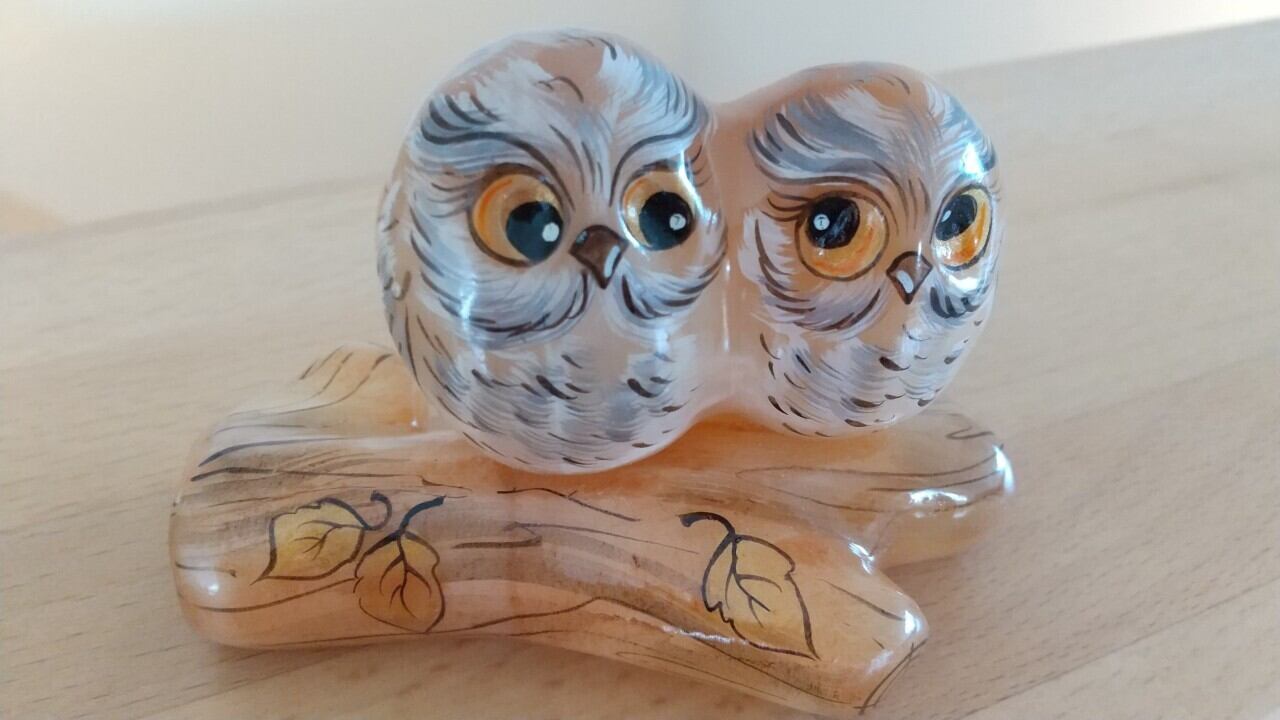 天然石(セレナイト)の置物(ふくろう)です。ふくろうや動物陶器が好きな方への贈り物にいかがでしょうか?天然石は光の強弱に敏感に反応するため、見る方向によって色が変化します。