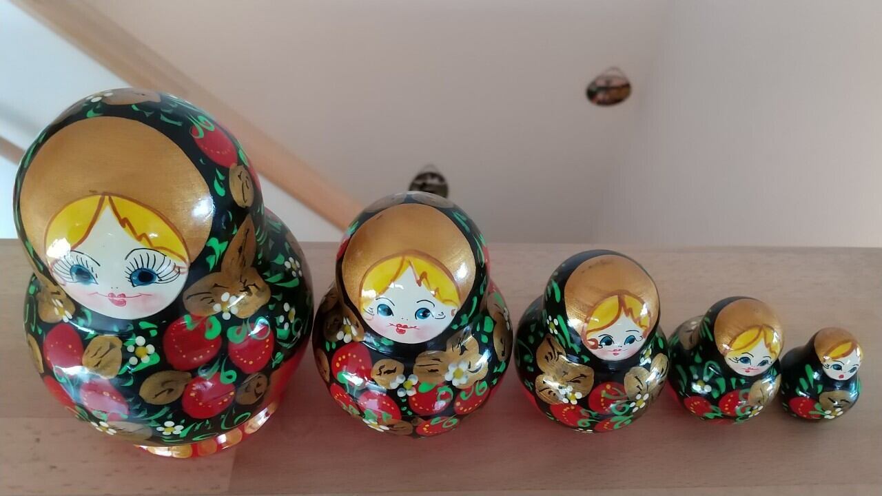 ロシアの伝統工芸品であるホフロマ塗りをモチーフにしたマトリョーシカです。トルストゥーシカ(太っちょ)という種類のマトリョーシカで、ふくよかで愛嬌のあるロシアのお母さんがイメージとなっています。