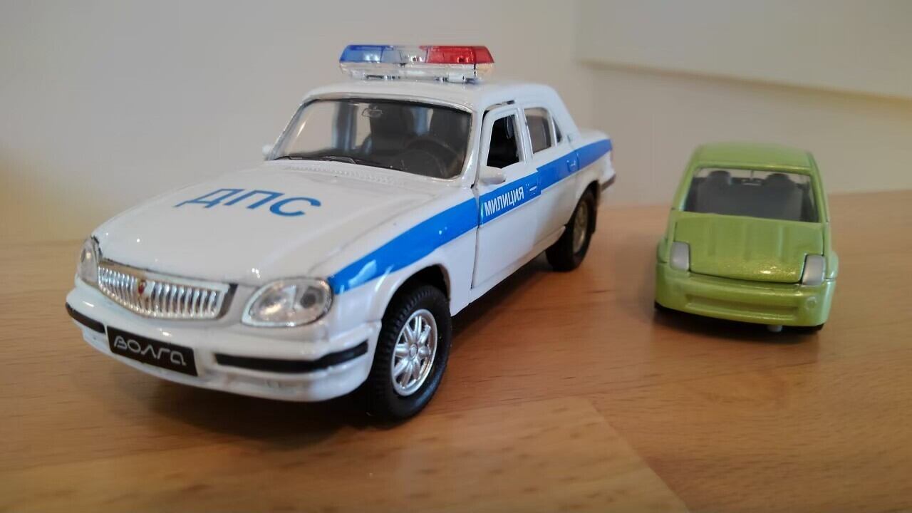 ◆ロシアのミニカー(モデルカー)です。ゴーリキー自動車工場(GAZ)、ヴォルガです。ソ連の道路交通警察の公用車両です。