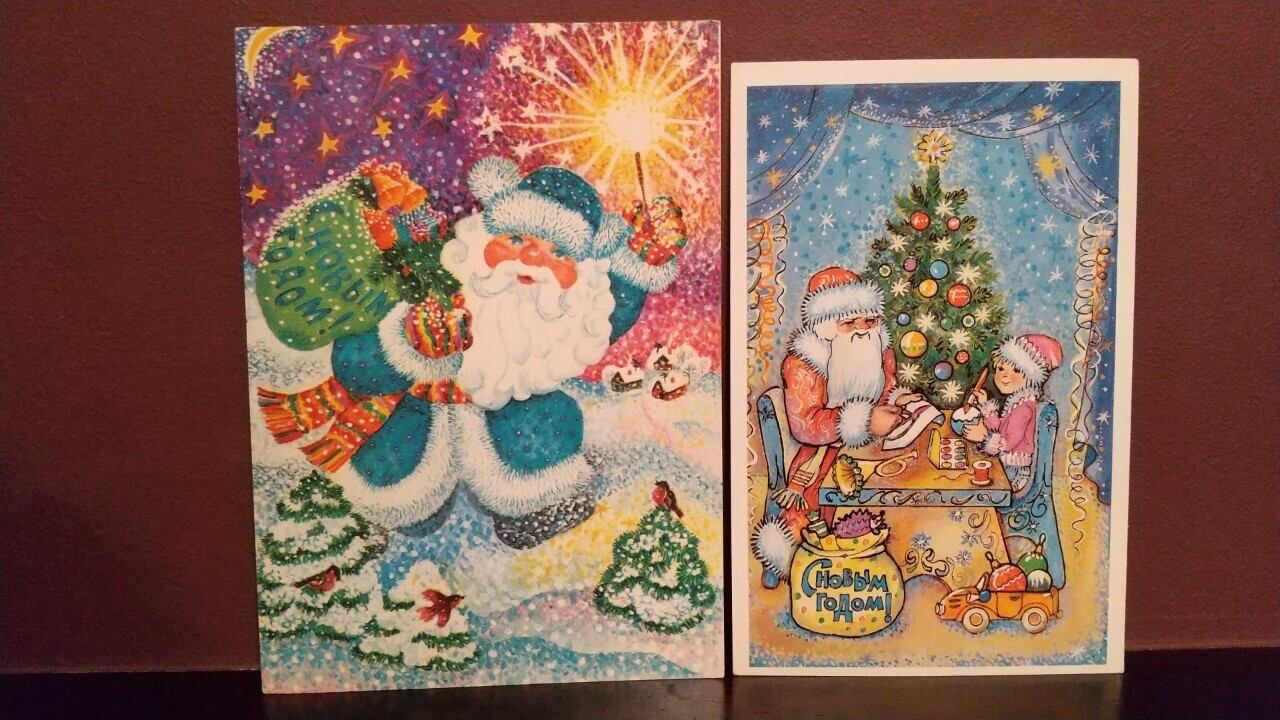 ソ連のヴィンテージ絵葉書です。マロースおじさん(サンタクロース)などがモチーフのレトロポストカードです。