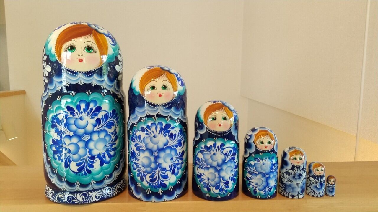 北欧ロシアの民芸人形、マトリョーシカ(大)【グジェリ7体】