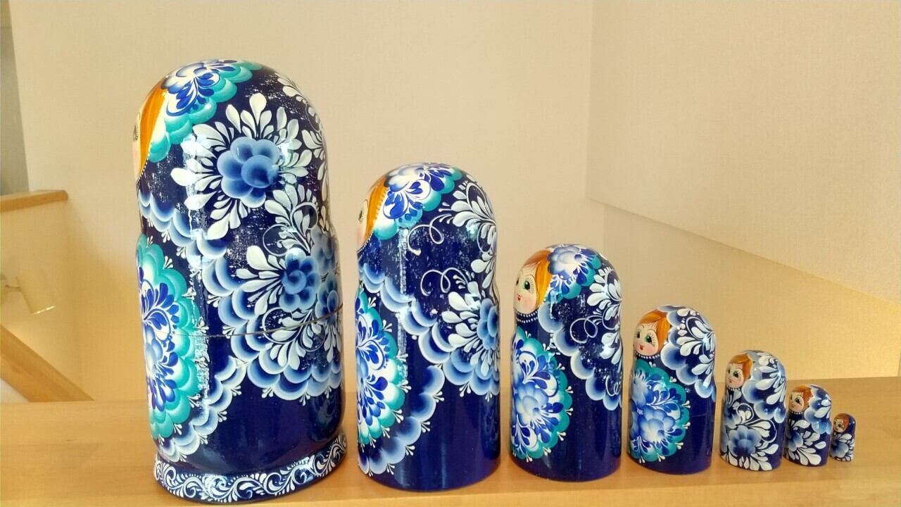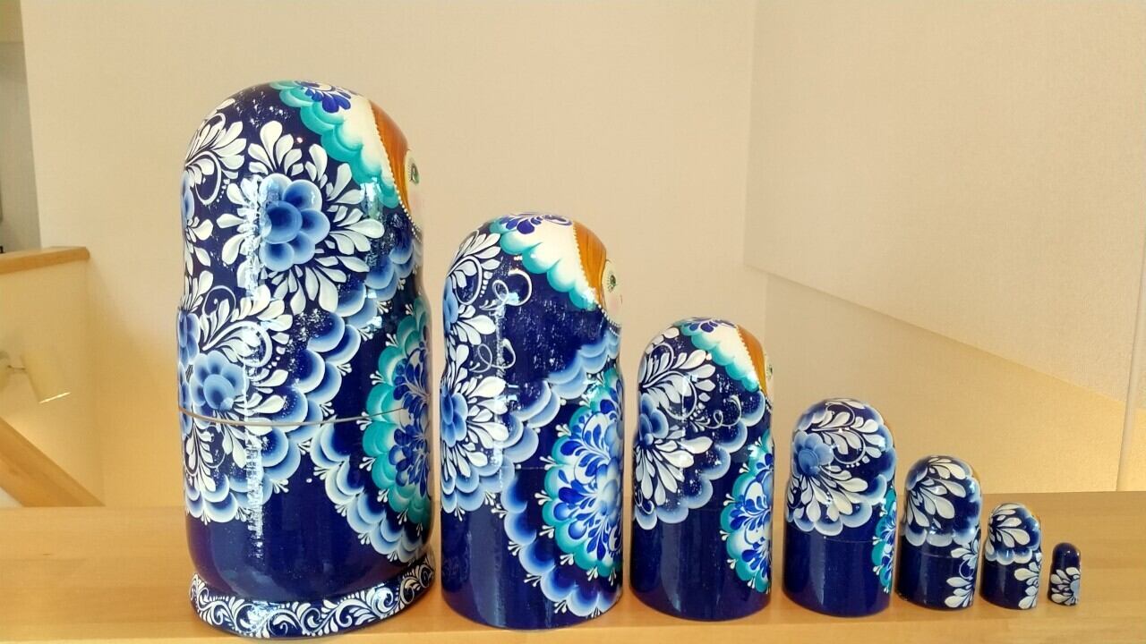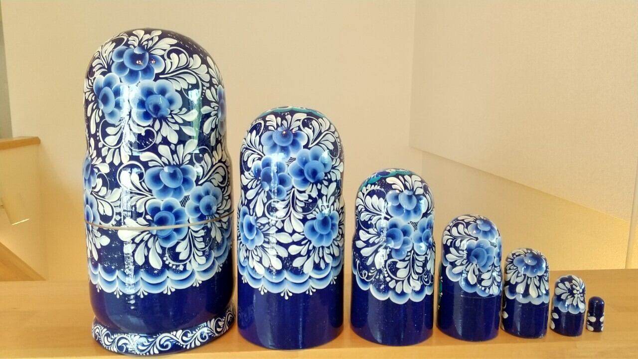 ロシア連邦のモルドヴィア共和国で有名なナターリア・ポポヴィッチさんという作家から直接譲り受けたマトリョーシカです。ナターリアさんはプーチン大統領にもマトリョーシカをプレゼントした経験があるマトリョーシカ職人です。非常に精巧なタッチが特長です。