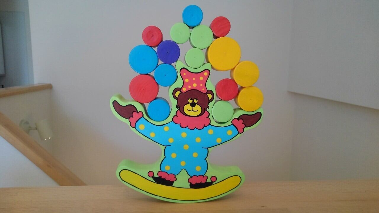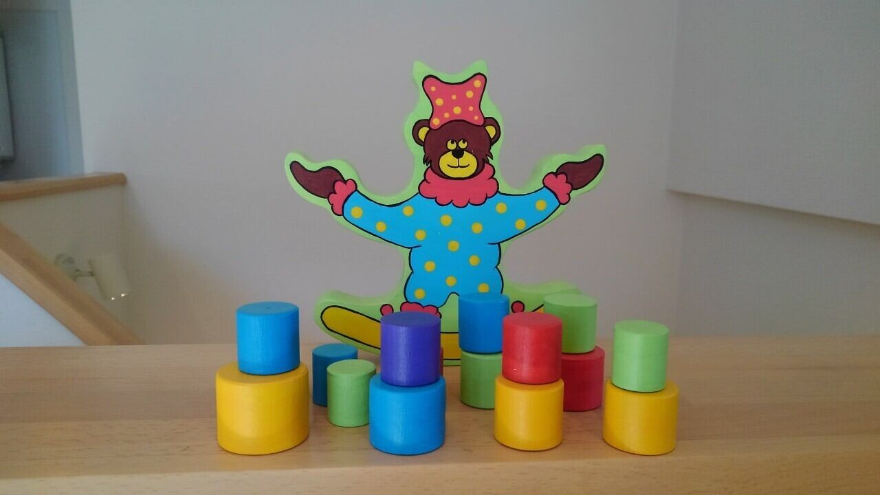 大小さまざまなカラフル丸太の木をどの位置に配置するかによって、熊の左右の傾き具合が微妙に変化していきます。